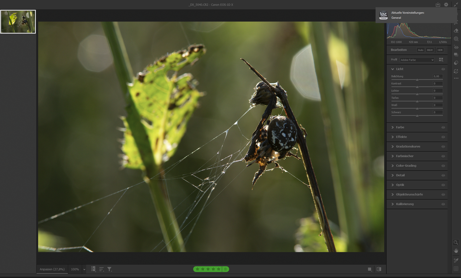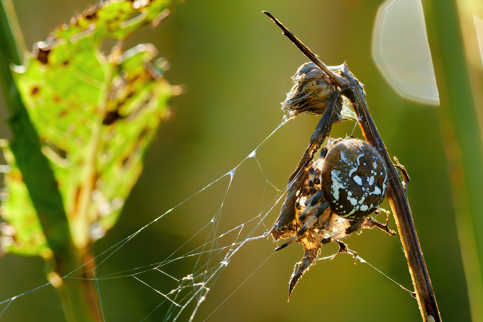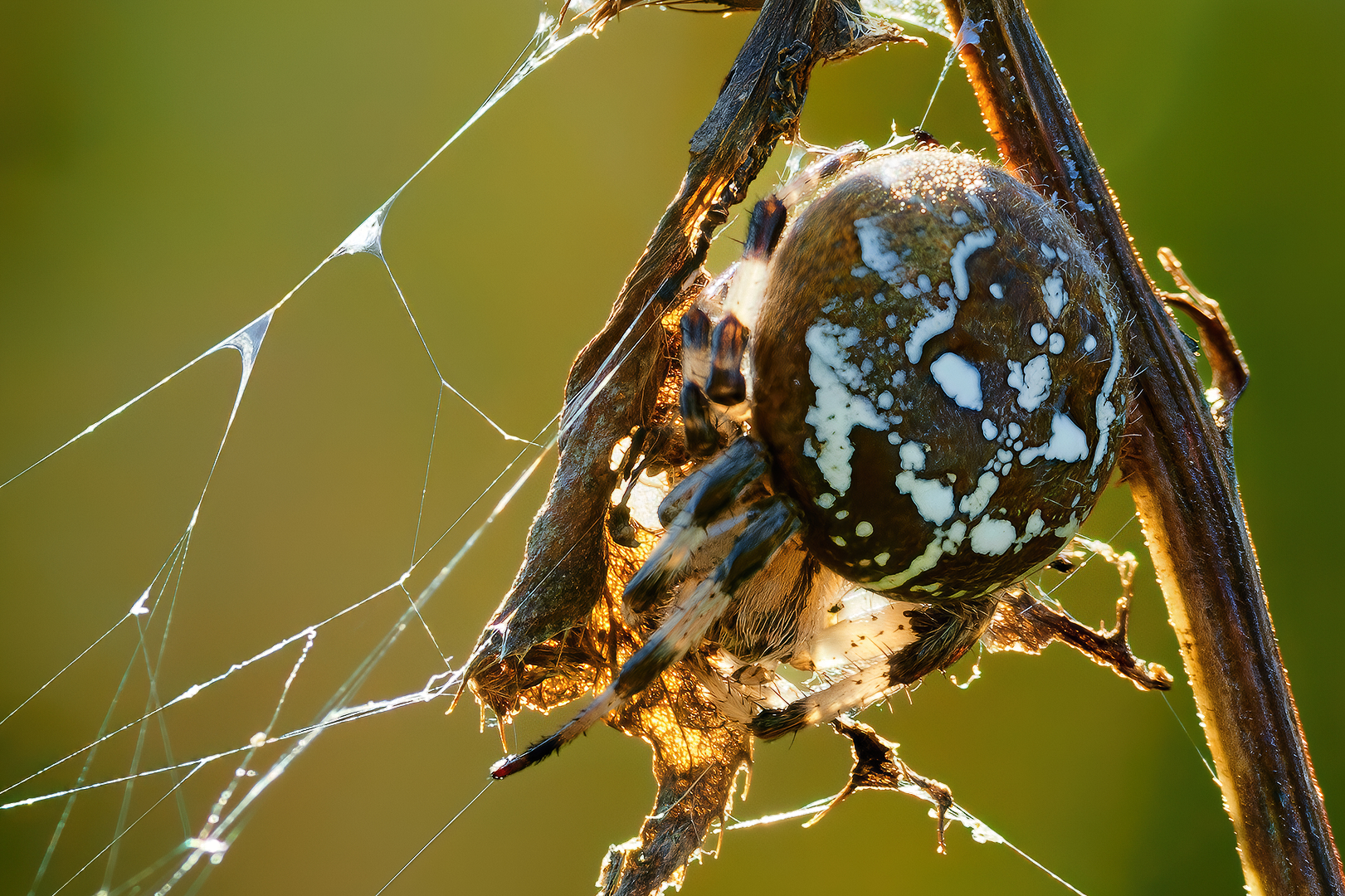 Just a side note: Despite some possible imperfections, I especially like the first picture. I’ve tried to take a photo of a garden spider many times in the fall, but it was never really worth it. The position and lighting always hid something from me. The web was mostly (almost) invisible – and a spider without a web? Bad. In your case, the necessary things are clearly visible (web, details of the legs, etc.). Although the spider should have been looking straight into the camera to get a good look!