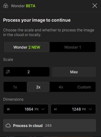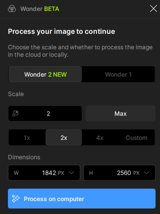 With local rendering now available, you can process as many images as you want directly on your device. No upload times, just Wonder 2 running locally.