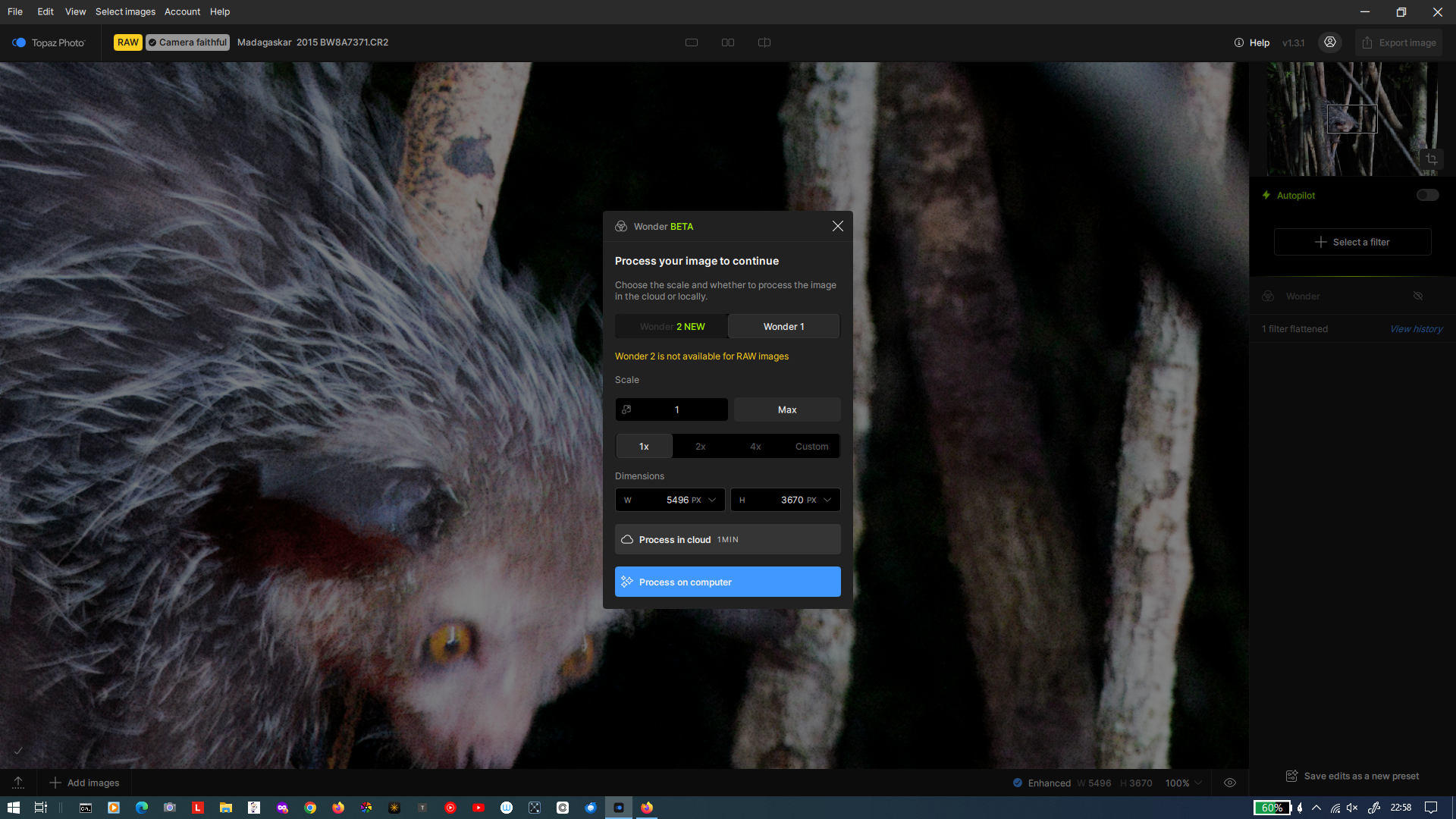 What happened to Wonder 2? Since the update to TP v1.3.0-v1.3.1, Wonder 2 can no longer be used for RAW files. See screenshot. Before the update, i.e. in v1.2.1, this was possible in the cloud without any problems.