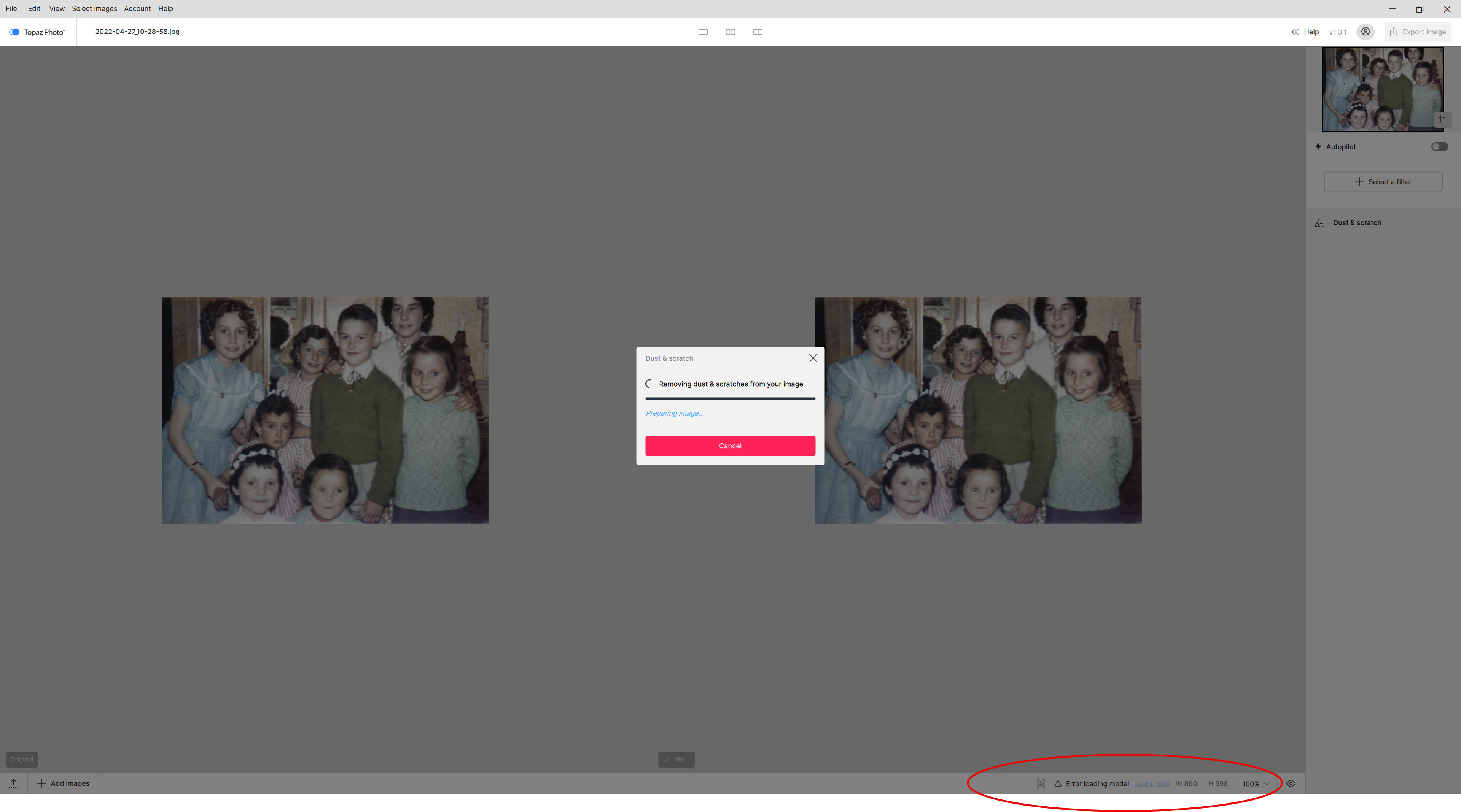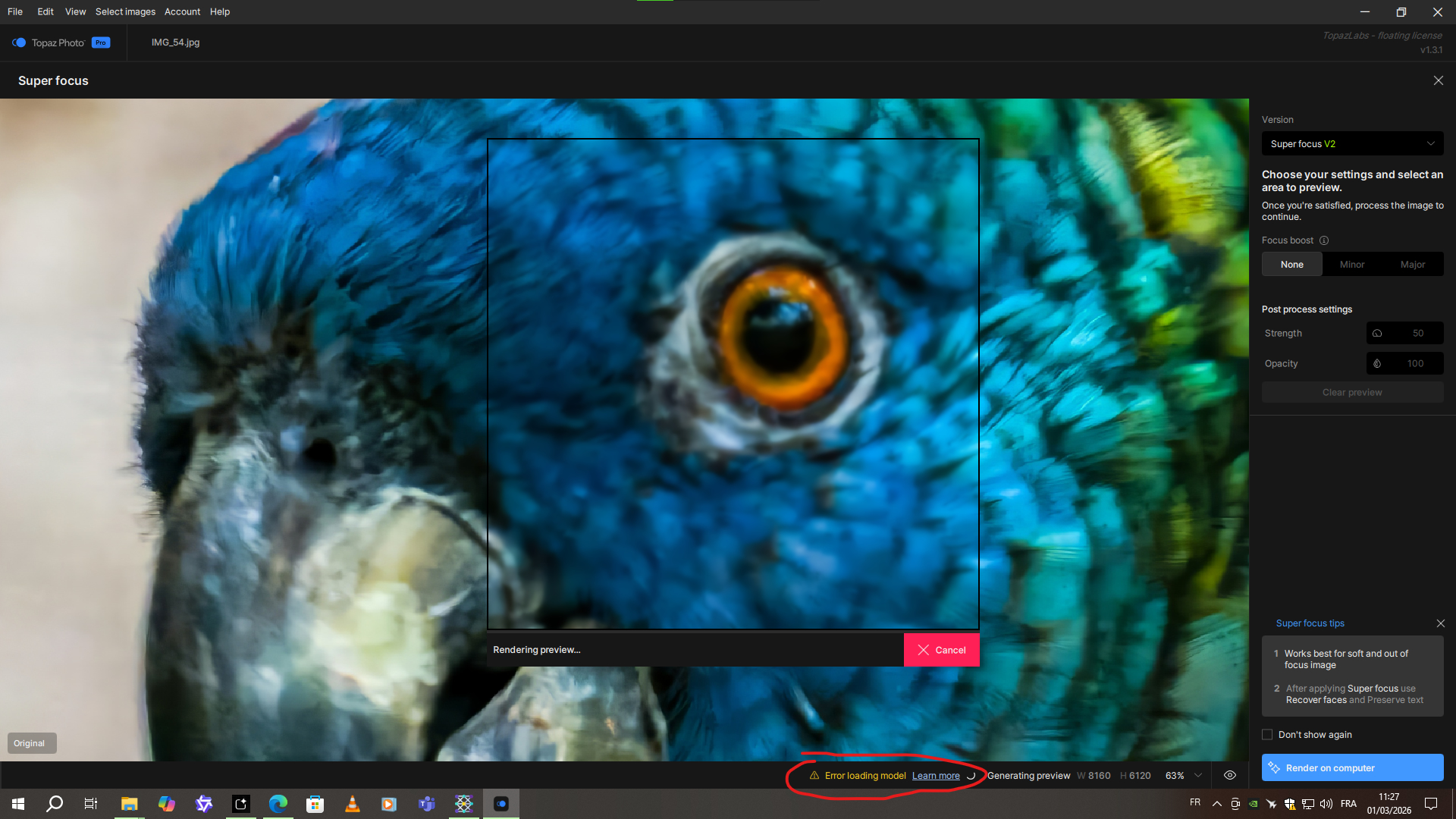 Topaz Photo 1.3.0/1.3.1 is broken for the Super Focus model. It displays an error message indicating that the model is missing. It worked perfectly before the major update.
