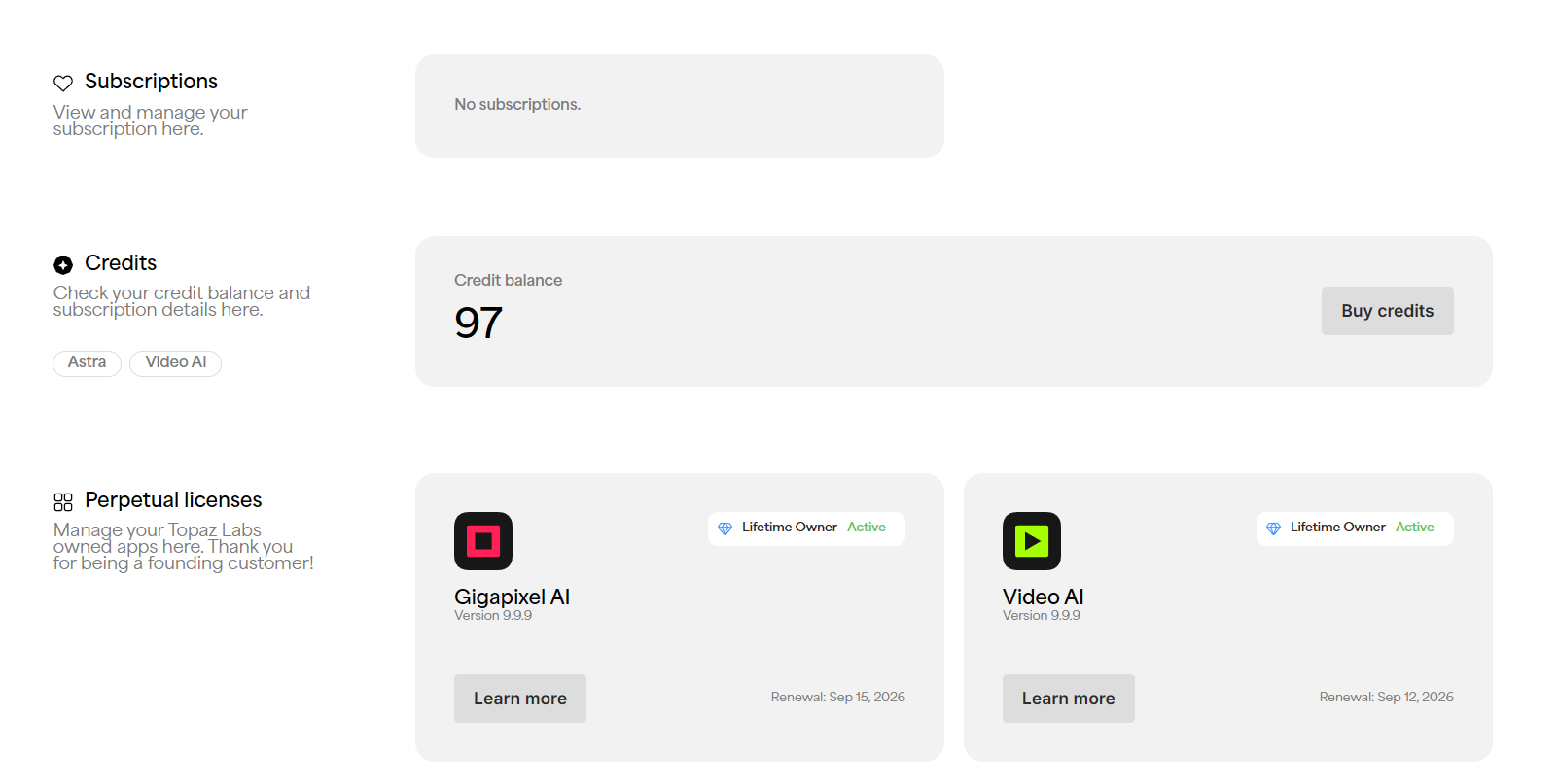 If the subscription lapses then so does the Studio access, but you always still have access to the perpetual versions of Photo AI and Gigapixel.