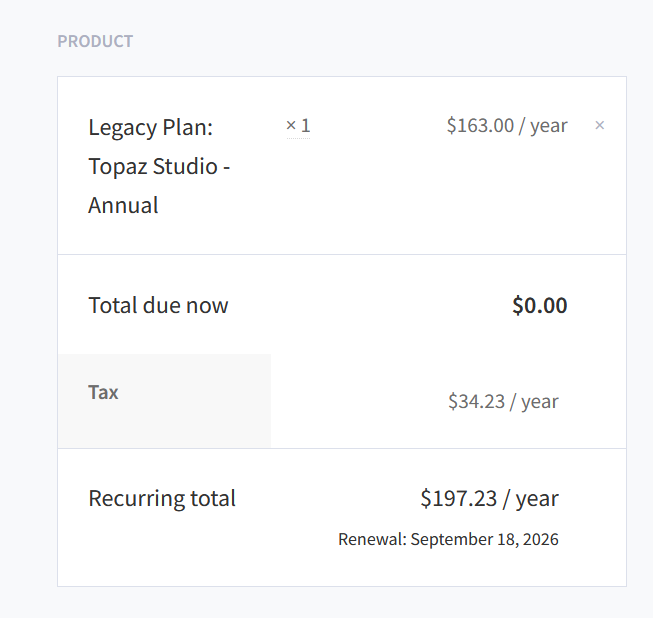 I did everything the email said — renewed Gigapixel and Photo AI, downloaded the new 1.0.0 versions, and both of those work fine. But Video AI 1.0.0 still asks me to subscribe, and when I check the Topaz Studio subscription page it shows $200/year. The email said having two apps with active renewals would unlock Studio for free, but right now it looks like I’d still have to pay extra, which makes no sense.