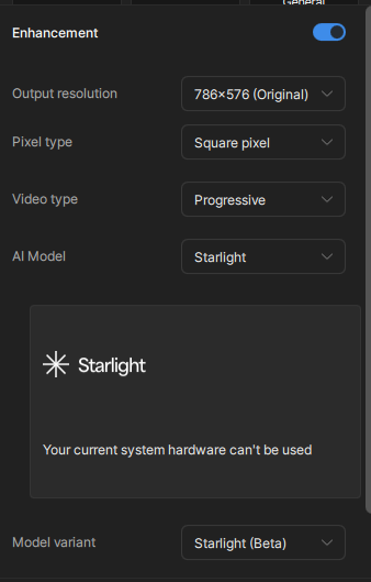 I second jo.vo; even with the SOFTEST input, the Starlight Sharp model’s output is too rough and it is TERRIBLE with small distant faces compared regular Starlight. Lots of unnecessary texture where it shouldn’t be. Same with Rhea XL…it’s just way too much even for the worst low-res VHS or internet videos. I’ve never found a use for either of them that yields anything but garbage output. In fact, I’ve taken to keeping Rhea at “0” because anything additional is overkill on that one too.