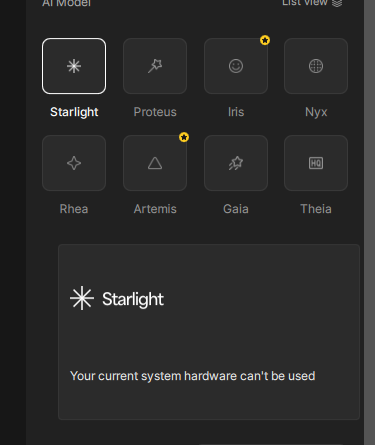 The beta now runs locally on some AMD GPUs—BUT the current AMD requirement is ≥20 GB VRAM and ≥32 GB system RAM. So, with Ryzen 7 7800X3D + RX 6950 XT (16 GB) + 32 GB RAM , you meet system RAM but your GPU misses the AMD VRAM minimum for Starlight.