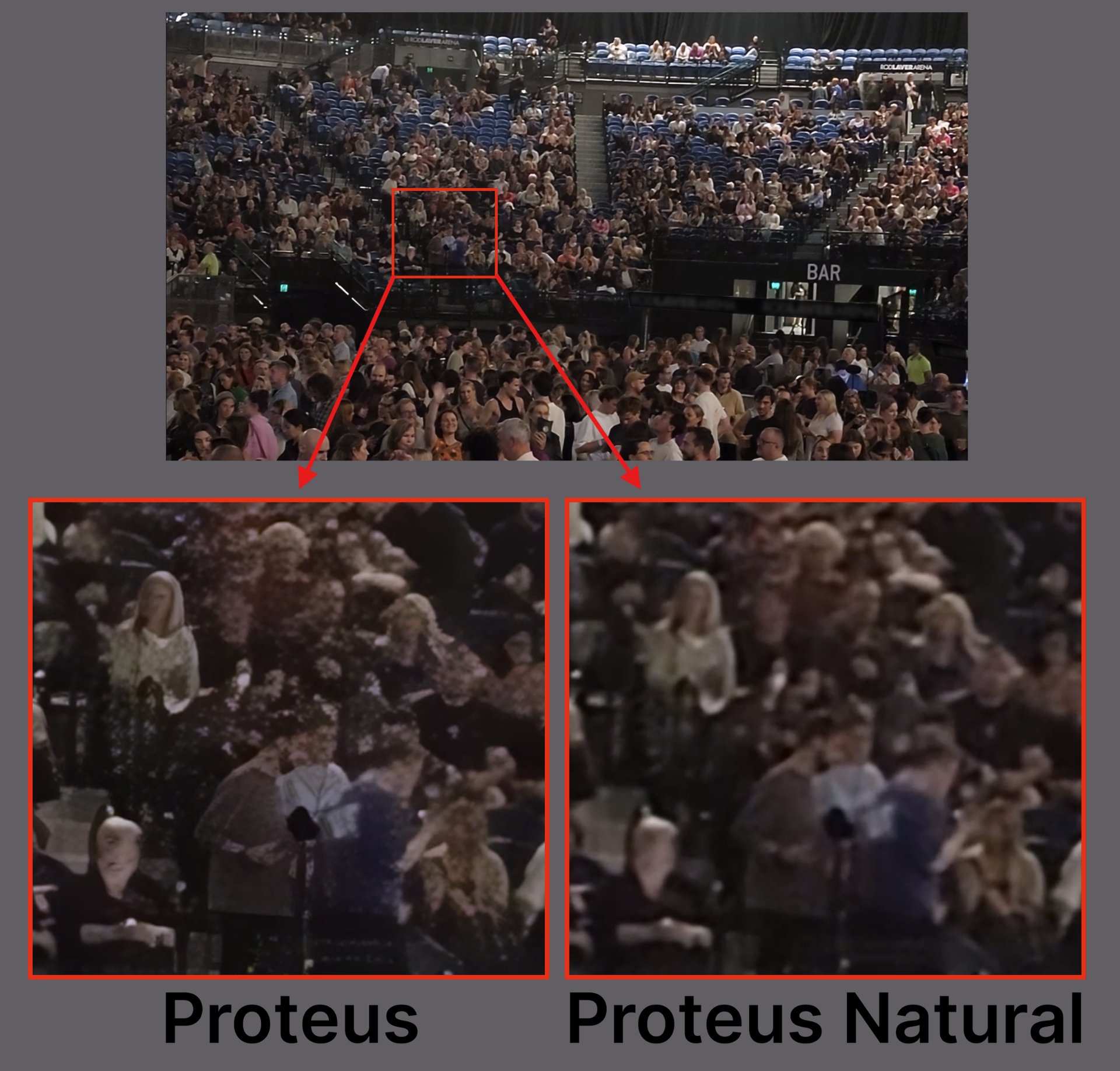- Additionally, smaller faces (background people -small in scale) can also have distorted faces as a result of Proteus trying to understand a face from pixels of low quality video data. Proteus Natural, reduces this issue and allows for a more subtle touch up rather than an over estimation of the face.
