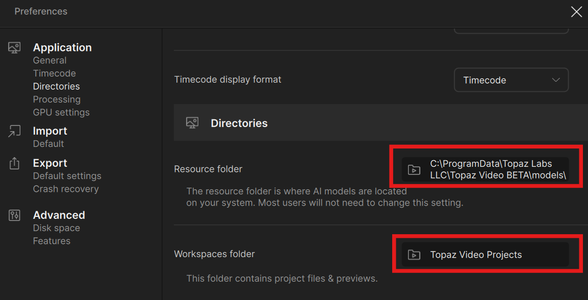 - Drive-root paths (e.g., F:) are displayed in workspace/export/model directories settings.