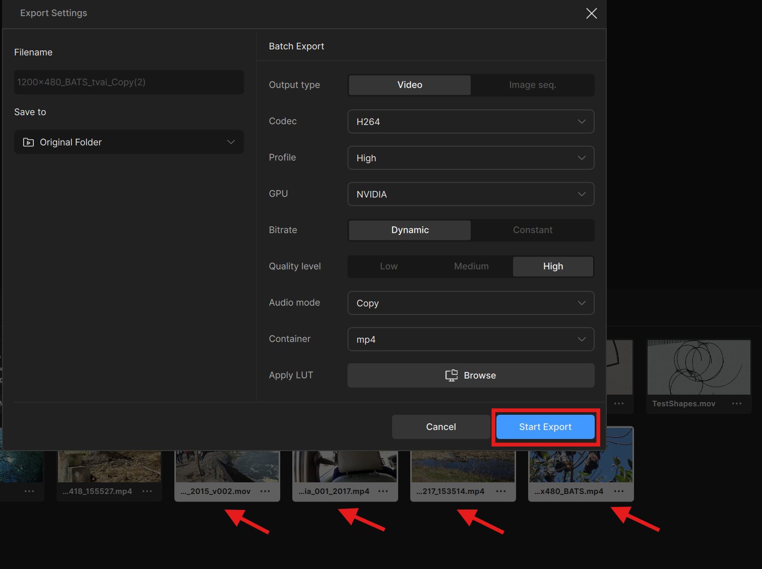 - Clicking âStart Exportâ button (while batch exporting) now closes the Export Settings pop up menu. Previously this would stay open and require the âXâ button on the upper screen right corner to be pressed.