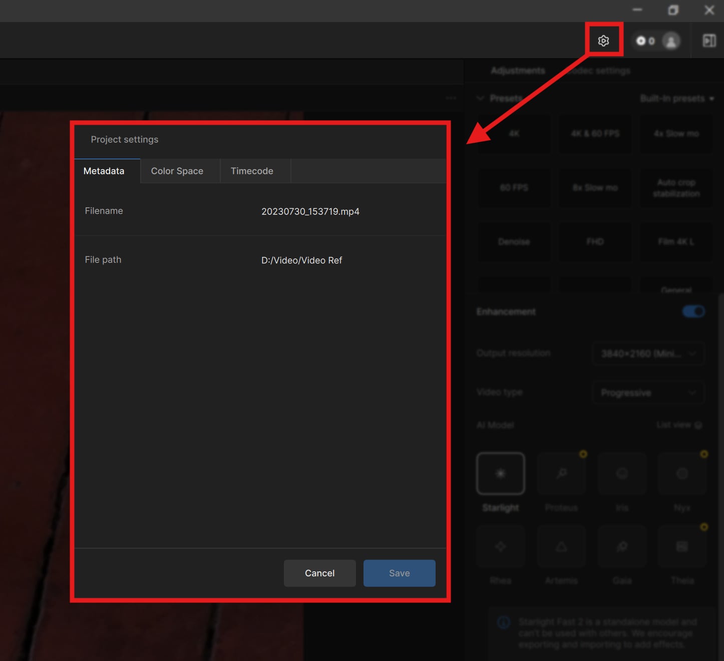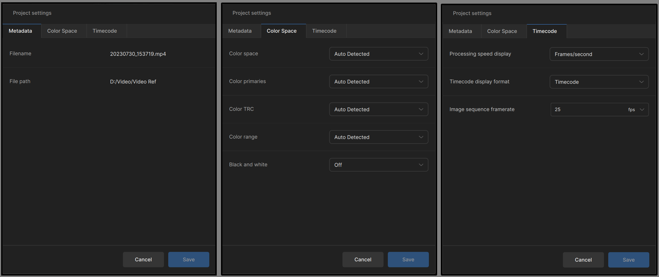 The Project Settings Dialog can be found from the File menu item and replaces old input settings panel. Some of the options for settings include project-wide input colorspace, black + white, timecode options, and image sequence FPS.