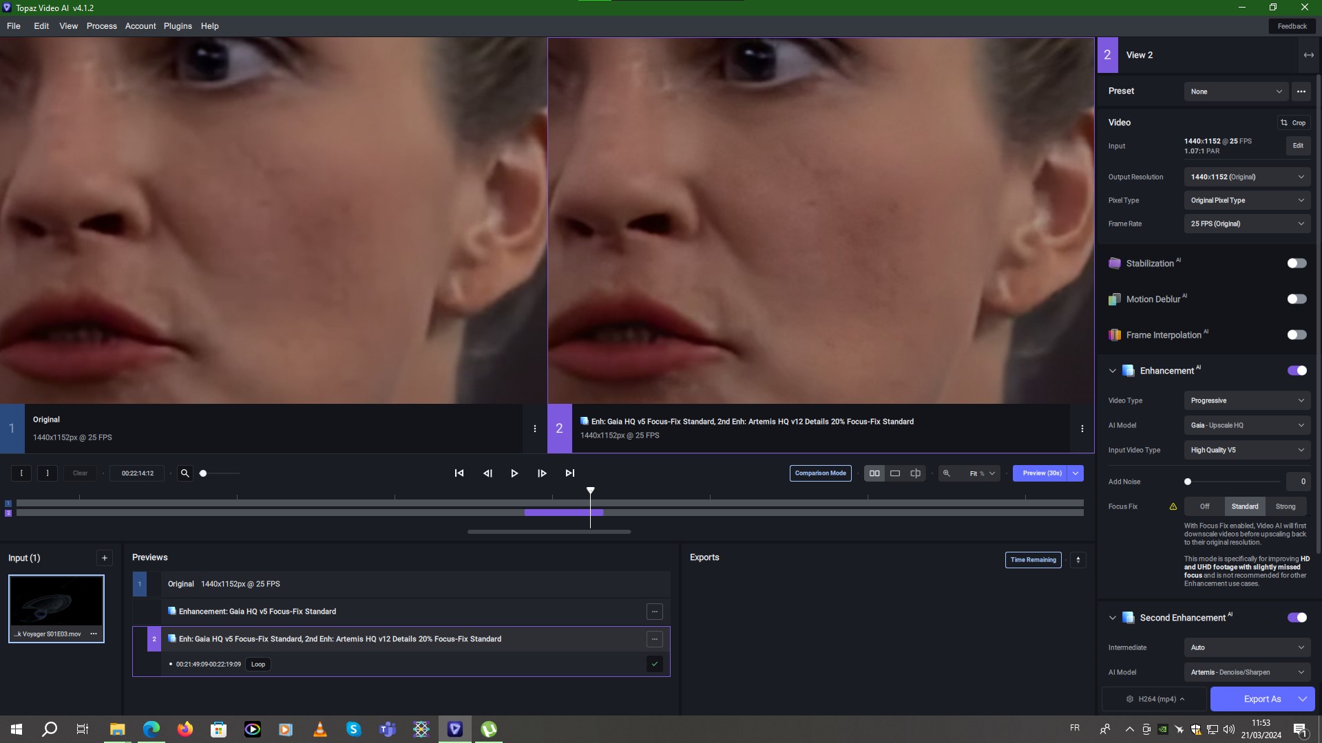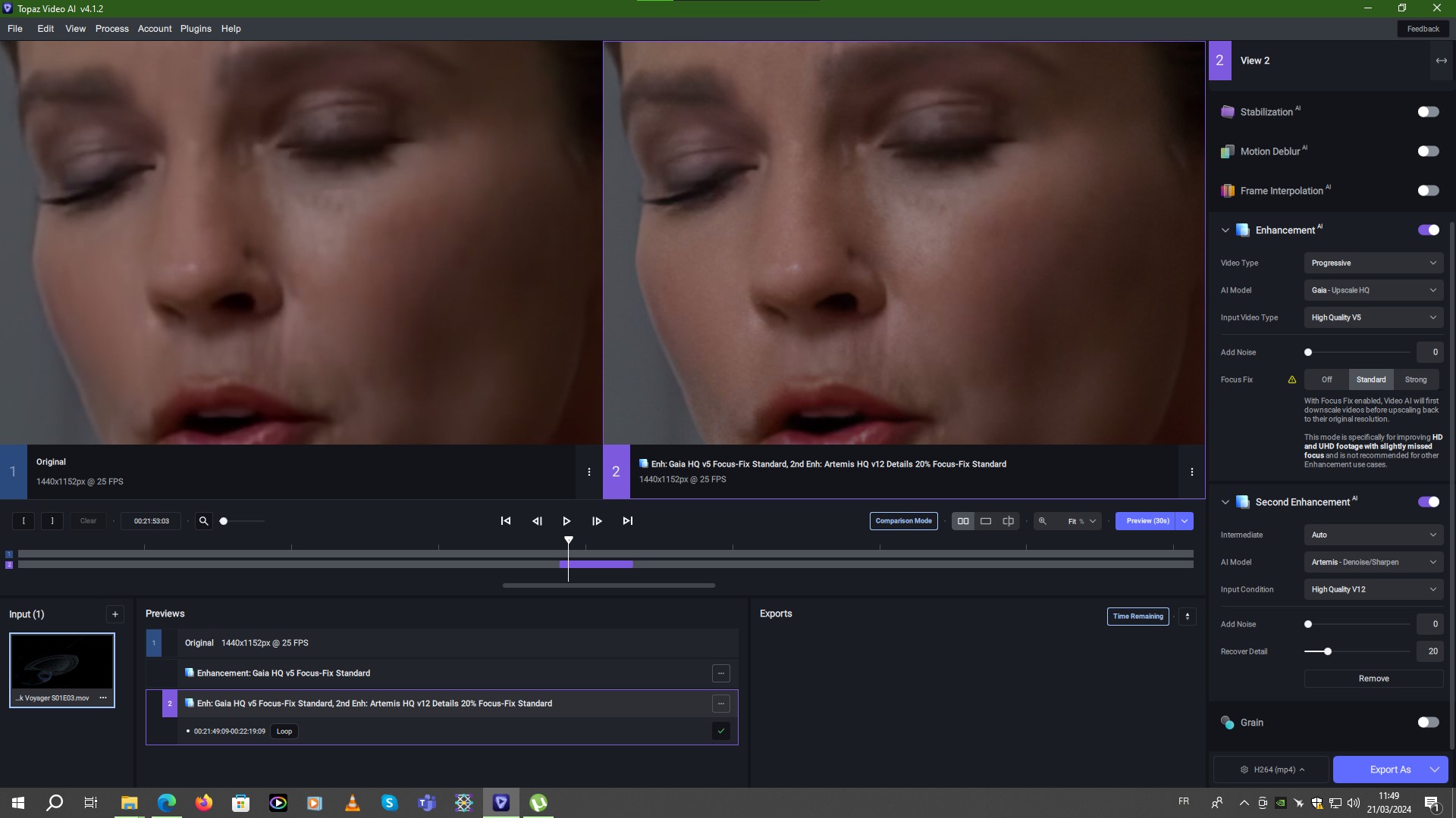 Finally, the final pass adds a little more sharpness and texture to the skin on close-up shots of faces, as well as subtle details in clothing and hair. Star trek Voyager final improvement.json (2,6 Ko)
