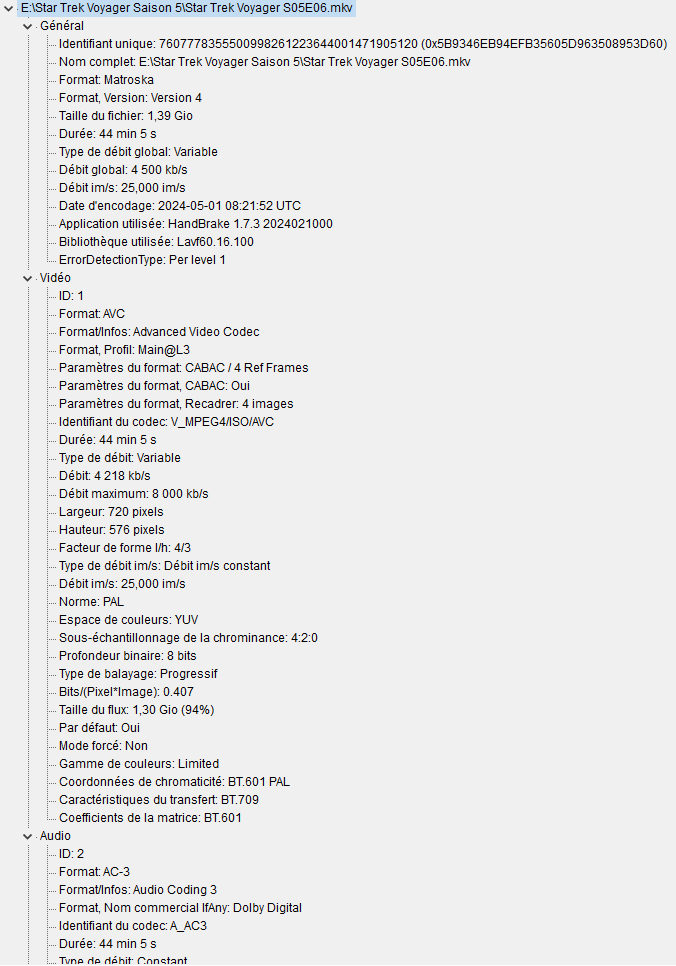 But they were dematerialized DVD copies that I downloaded from a website. And basically, the compression of each episode is between 1.21 GB and 1.43 GB. Which isnāt too much. If I had larger files from the start, the quality would be even better in HD.
