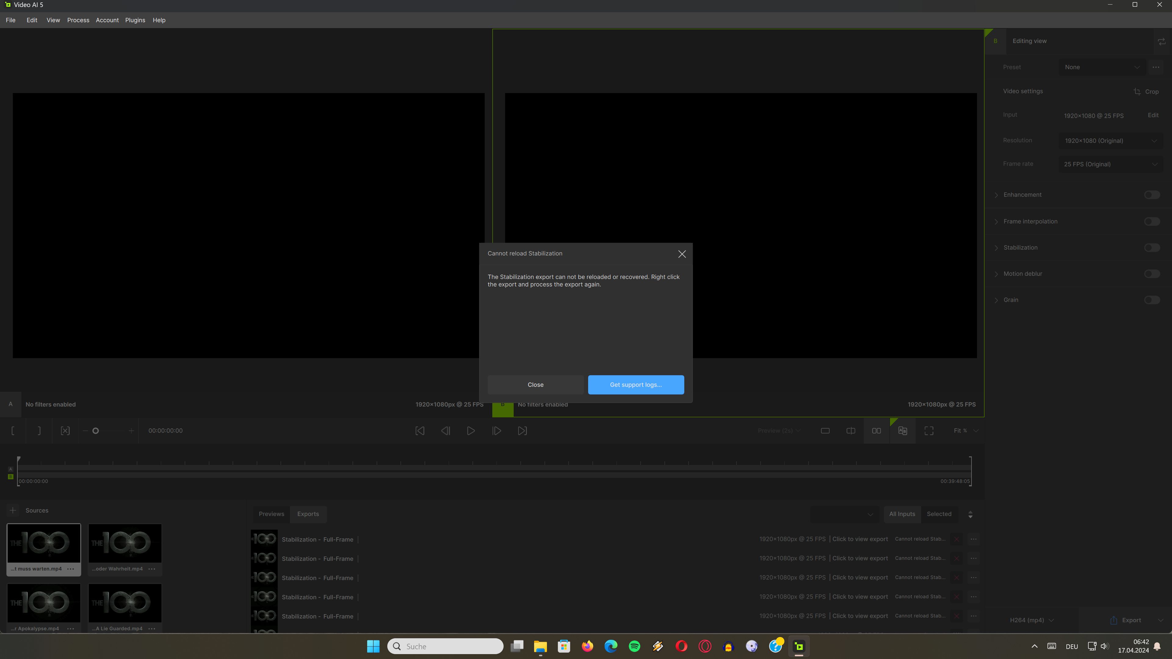 After the update and manually starting TVAI again there show a lot of red crosses at all exports: