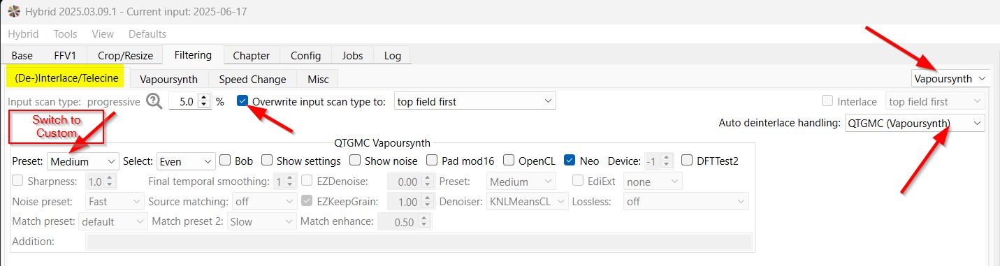 I tried using your approach but for some reason all the options under De-interlace tabs are disable (greyed out). Is there anything else that you need to do under other settings of Hybrid? Maybe a full tutorial would be useful for some people (like me) if anybody wants to take the time to put it together.
