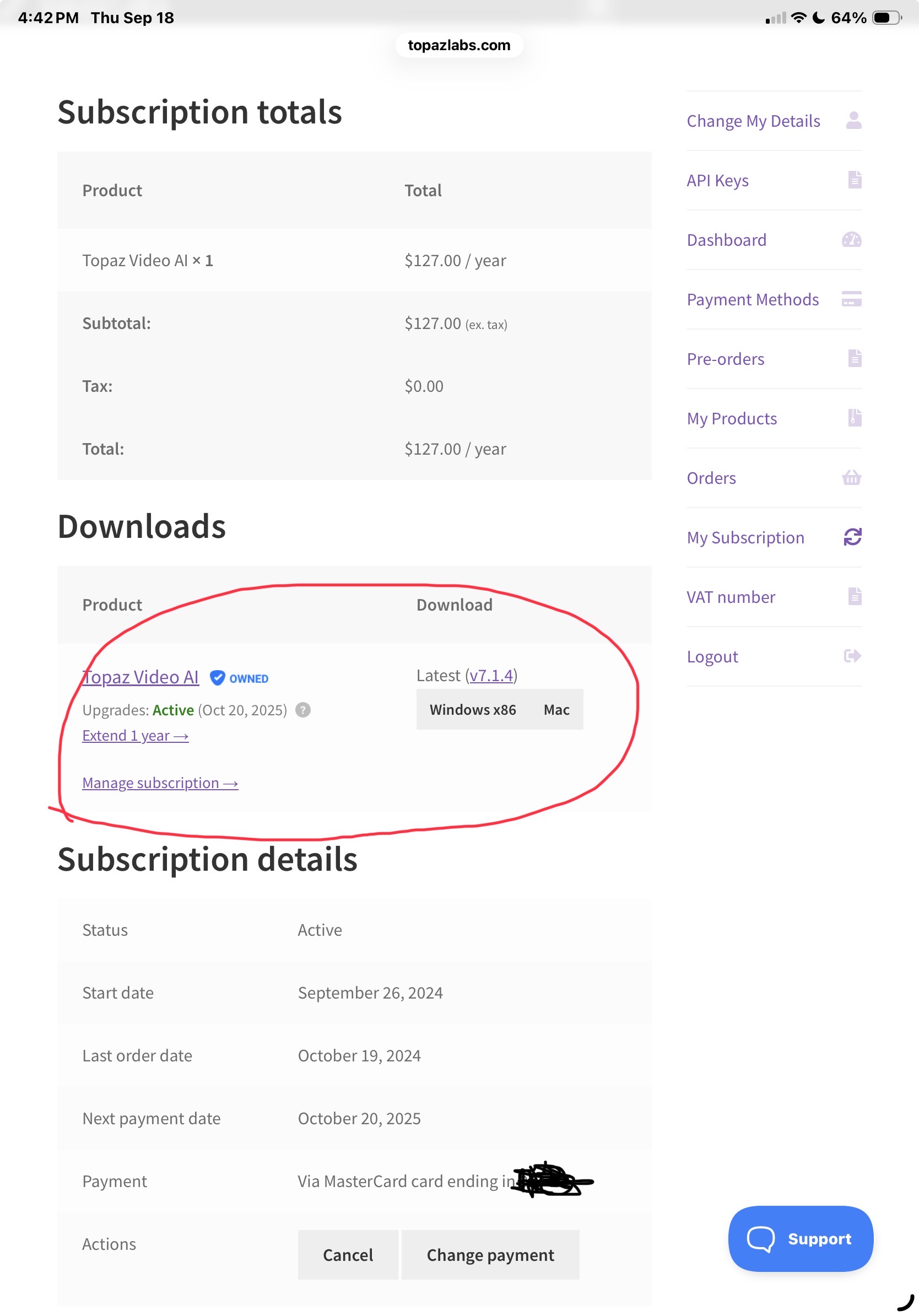 Do these photos mean I have an active auto renew subscription to topaz video AI? I think I do because it shows a next payment date, but I want to be sure.