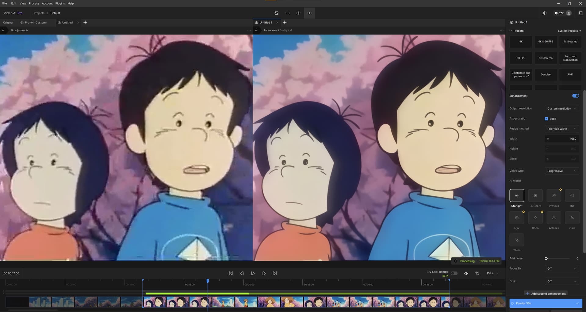 It generates more hallucinations and distortions as starlight_mini on old damaged VHS footage which is my main case of use. As en example, the “glasses issue” : the model thinks the person is wearing glasses for 1 or 2 seconds whereas it is not in the original footage ; starlight_mini has that issue too, but much less. Limbs seem sometimes distorted with slm1.1. Despite the improvement over slm1, it feels the model just doesn’t reach stalight_mini’s accuracy.