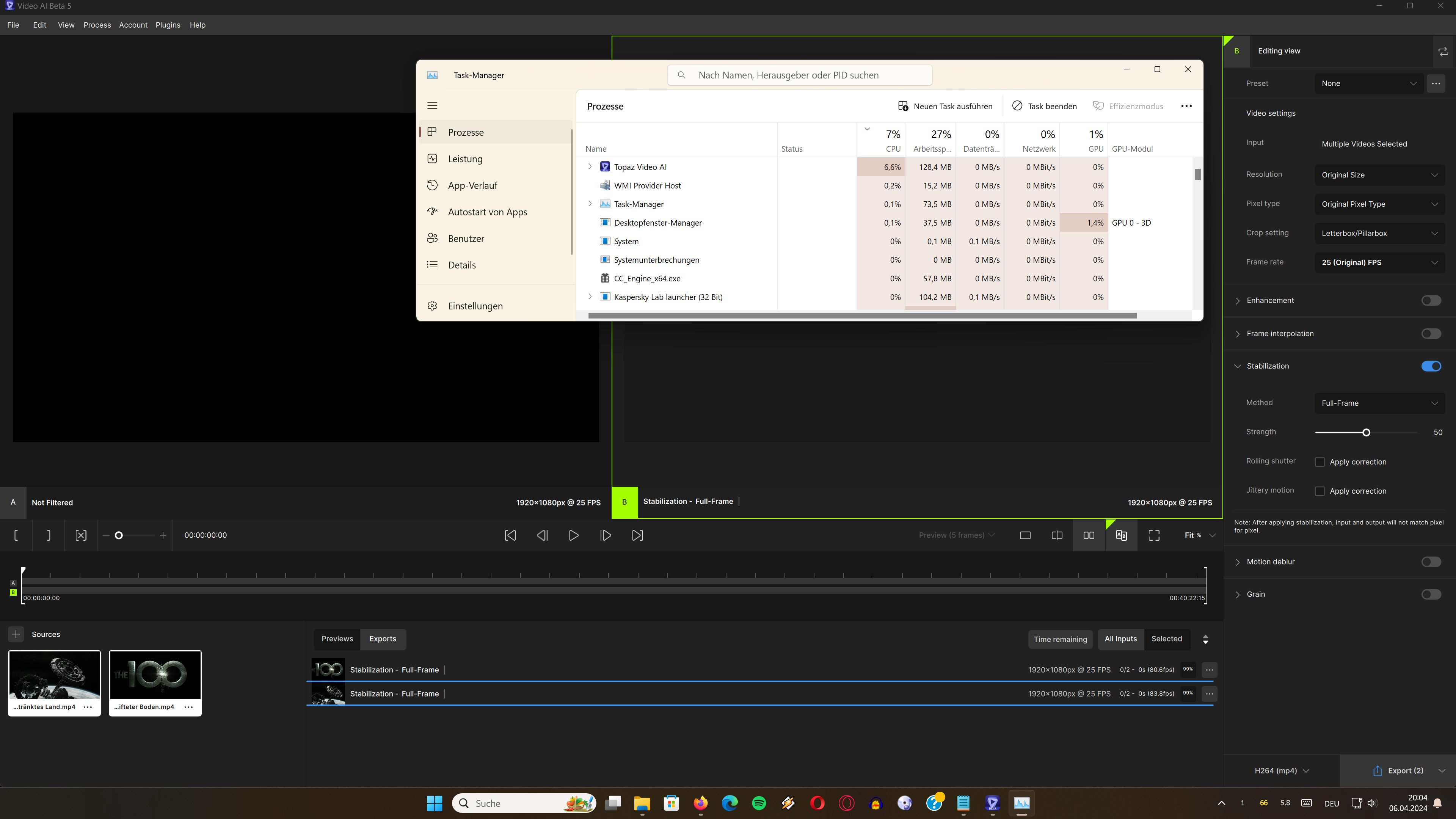 So i imported 2 videosā¦checked both and set stabalizing onā¦