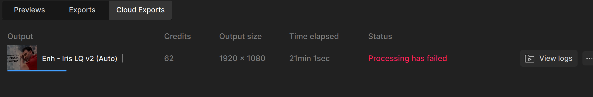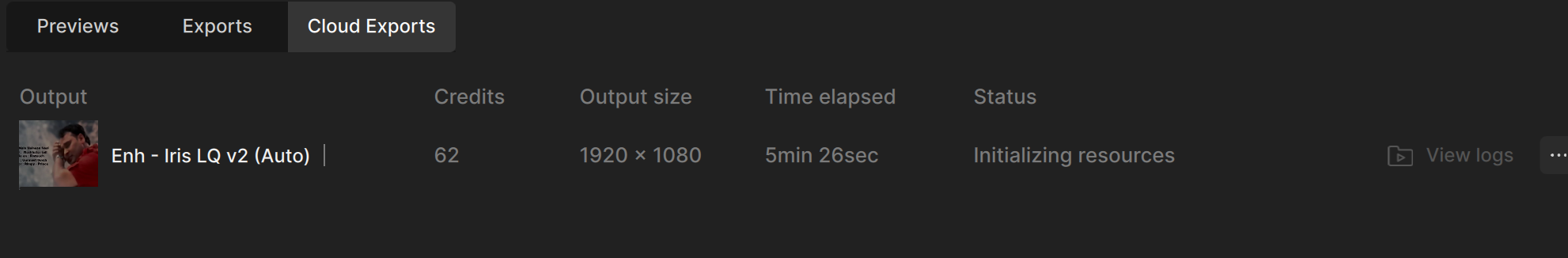 Its taking quite a lot time for Initiallazing resources in Iris model with same resolution settings its over 10 minutes now still not started processing. Estimated time for video output was 12 min when i hit cloud button