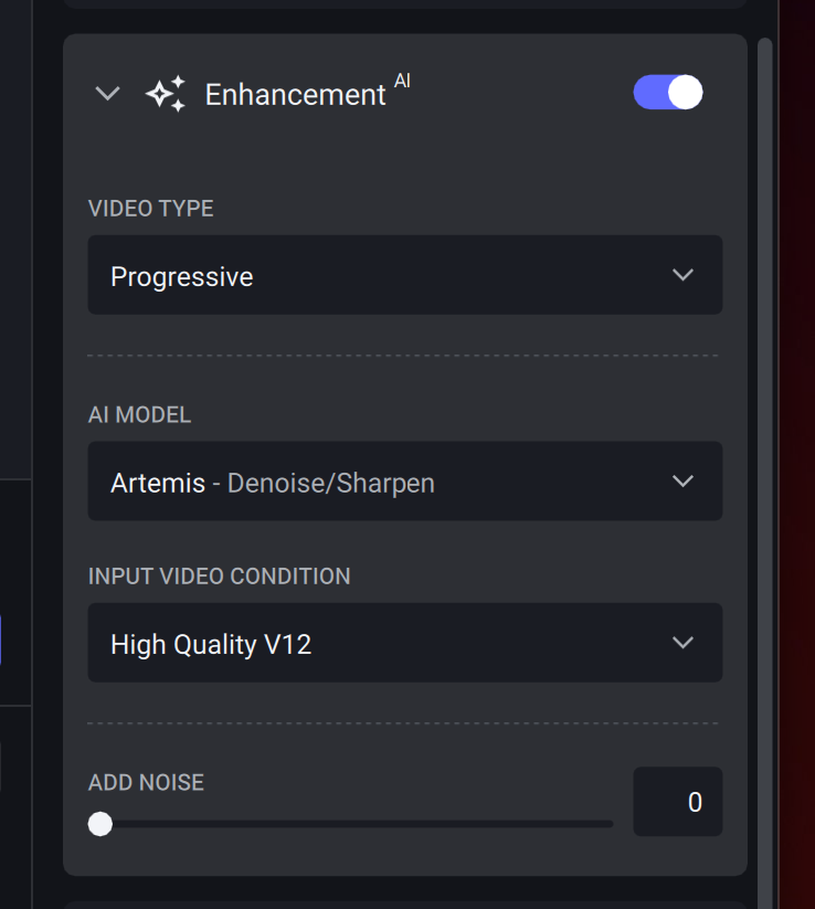 What you need to do to get 4x Proteus on all footage is to change the AI upscaler to trigger the 4x scale, and leave Lanczos the same. This will use Proteus to provide a 4x upscaler, then use Lanczos to bring the video back down to the resolution you picked.