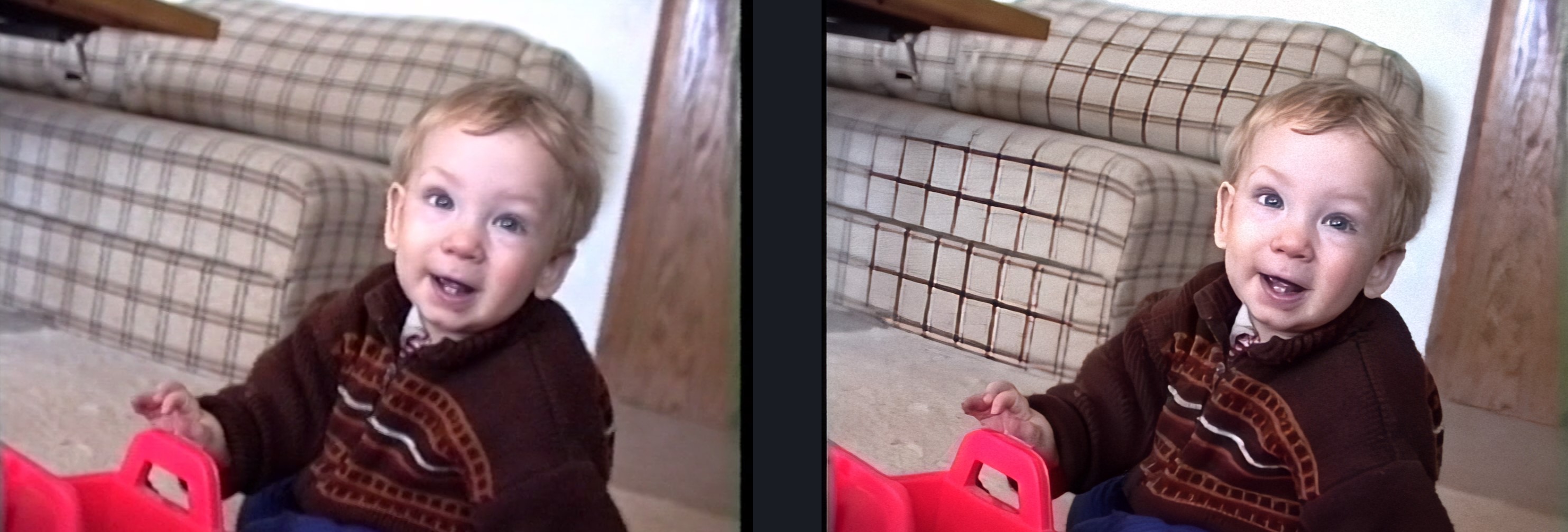 See the sofa at the back: (left original 576p, right upscaled 1080p parameters set to Auto)