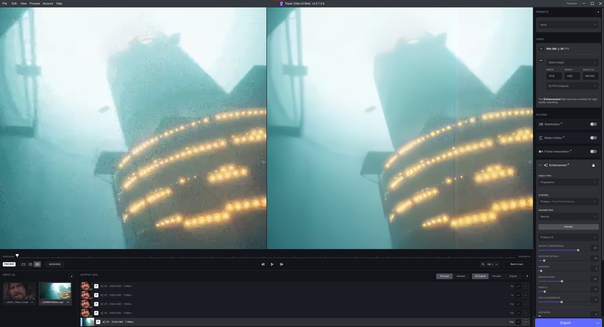 Yes, I deliberately lowered the âRevert Compressionâ slider on v4 b6 preview. And v2 and v1 Proteus models give similar to v3 results for this REALLY destroyed video.