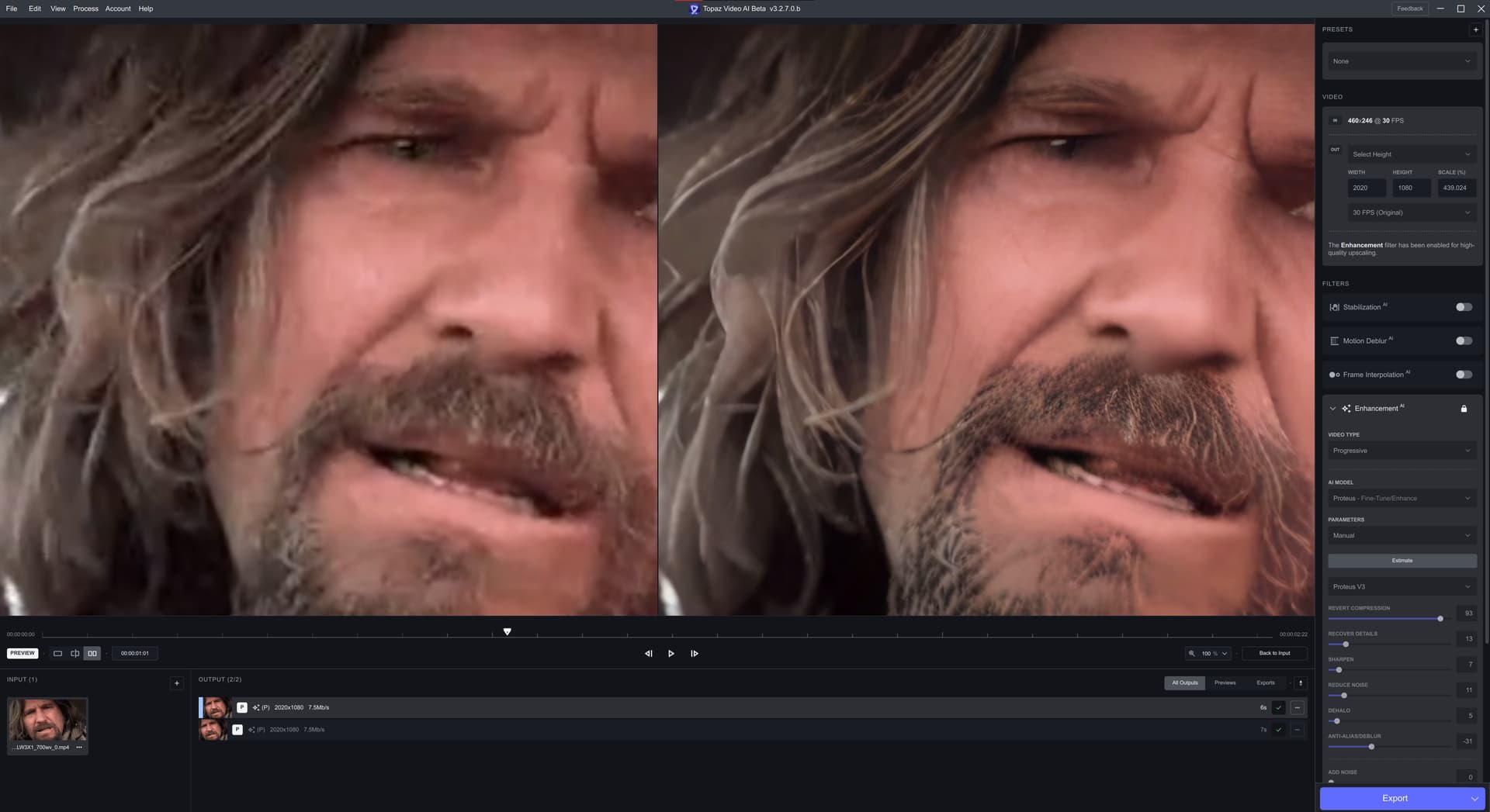All my comparisons are on Auto. But thatâs because I primarily do batch processing of videos with varying scenes and donât have the time to cut each scene, fine tune the settings, process it, then combine the scenes again. Iâm interested in what this model can do on full auto because thatâs just how I work with the Proteus models.