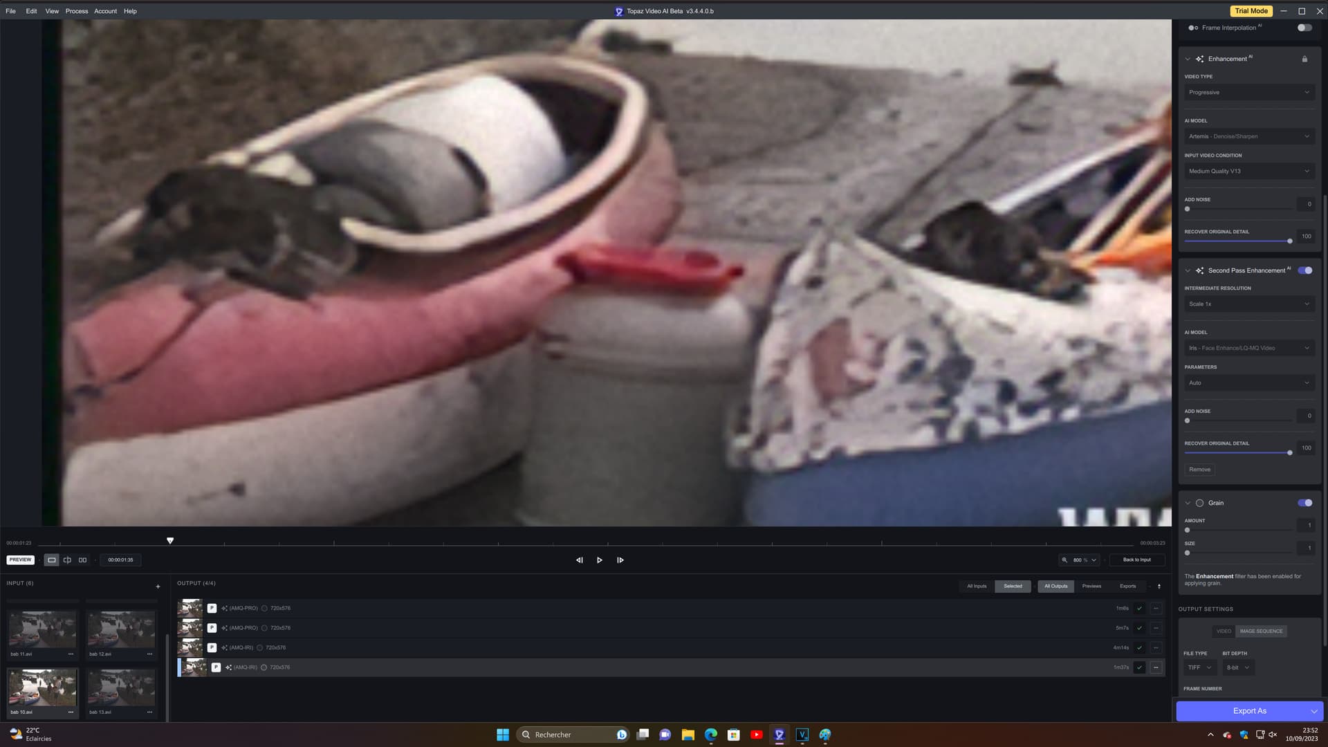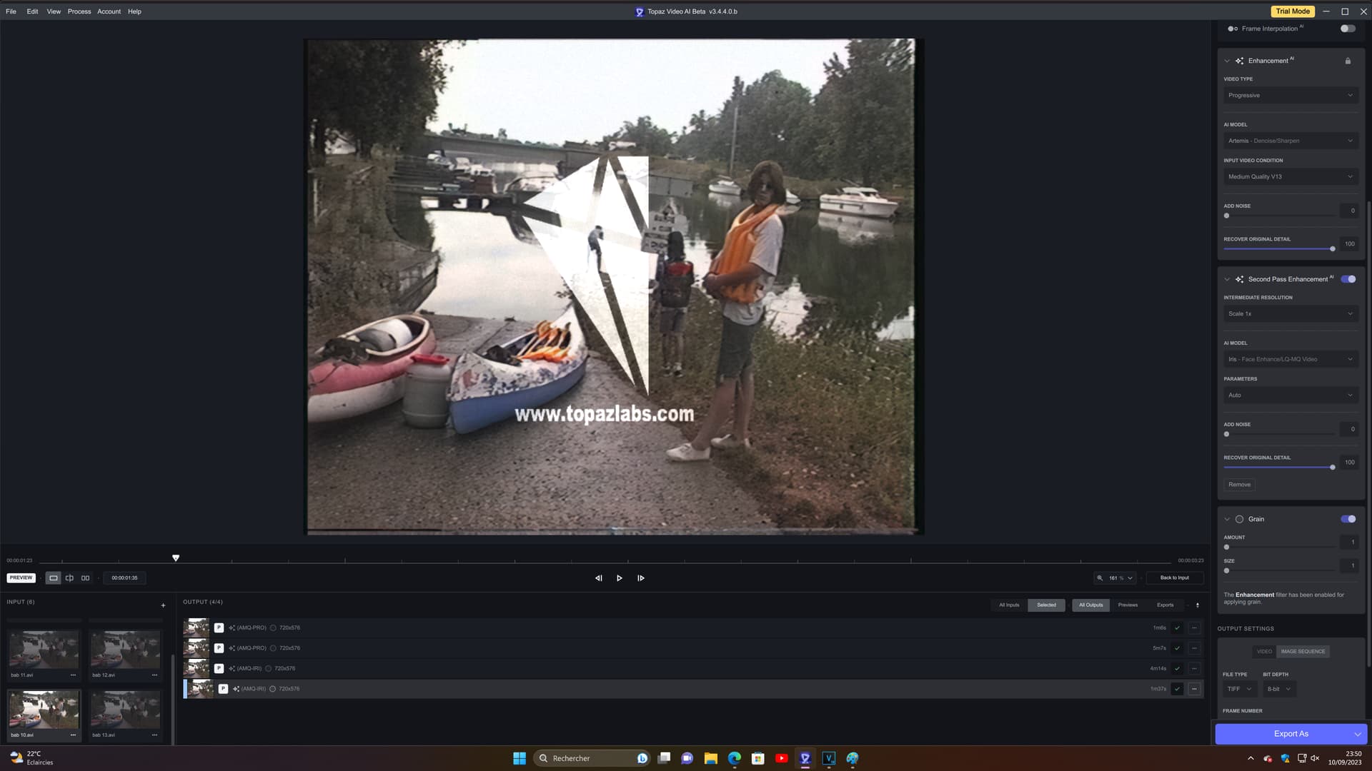 I don’t know if that has a relation but I just tried iris x2 and the output is still 720 x 576, however the quality is not the same, I lose details, but there is less 'artifacts. have seen that the upscal is applied because the details are finer in some places, even the topaz watermark and then the noise is less visible so we know that the definition is twice as large but by zooming in fully, the pixels are as apparent, on the red canoe we see it clearly, as if it has not been upscaled. what’s strange is that the output is always 720 x 576.