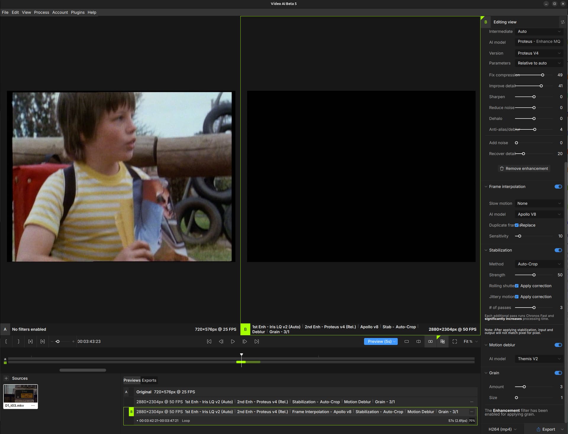 When I enable Frame Interpolation using any Apollo V8 through to Aion AI models, the resultant mp4 output is a blank screen, a black video at the given fps. If I disable Frame Interpolation, the video output is good. Iām trying to use Frame Interpolation to fix duplicate frames caused by NTSC PAL standard conversions and the like.