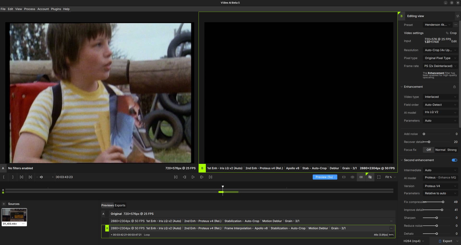 The reason for my bug report is for the " Topaz Video AI Linux Beta v5.0.3.0.b" version, the Frame Interpolation section produces a blank video output when using any Apollo V8 through to Aion AI models. When enabled the video output is a black video/frames at the giving fps. If I disable Frame Interpolation the video out is good (awesome even) thanks to the new Iris, Proteus⦠models. I want to use Frame Interpolation to fix duplicate frames caused by NTSC PAL standard conversions and the like.