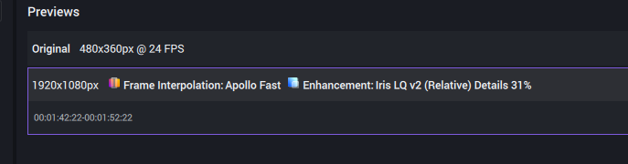 When performing an enhancement progressive Iris Face Low quality fix compression 12, improve detail 34, sharpen 37 reduce noise 8, dehalo 3, anti alias 4, recover detail 31 on a 480p video to FHD 24fps. I see on version 4.1.1 that the CPU has use but GPU is not