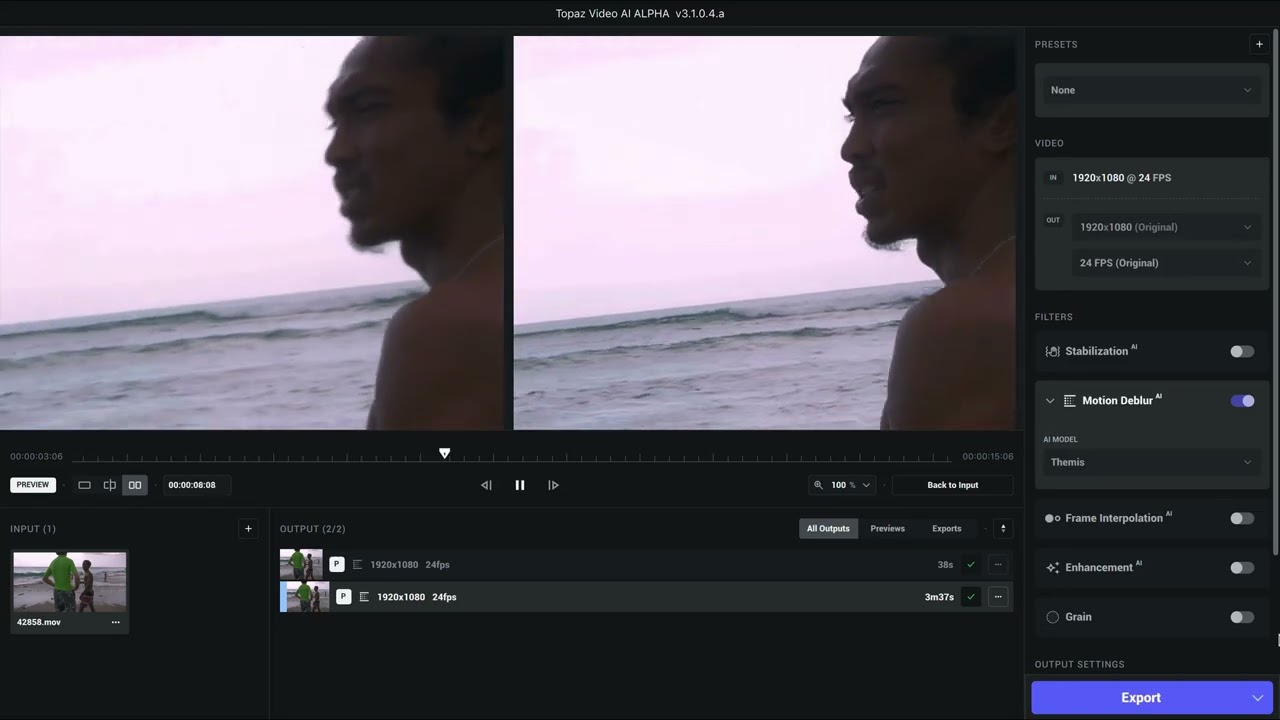Topaz Video AI v3.1 offers significant performance improvements and introduces a new AI model Themis that sharpens your video. Get it here:
