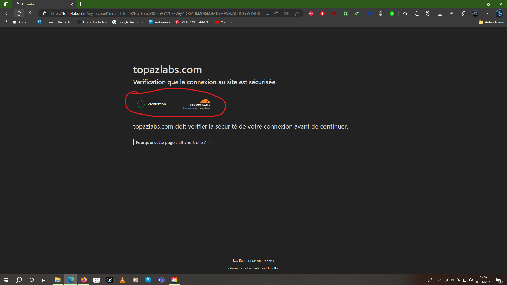 How odd. I live in Belgium. But why does it work with Firefox and not with Edge? Nevertheless, in both cases, I see the CloudFlare page displayed with the little loading wheel. Whereas 2 days ago, it was the classic Topaz site loading and I had no problems.