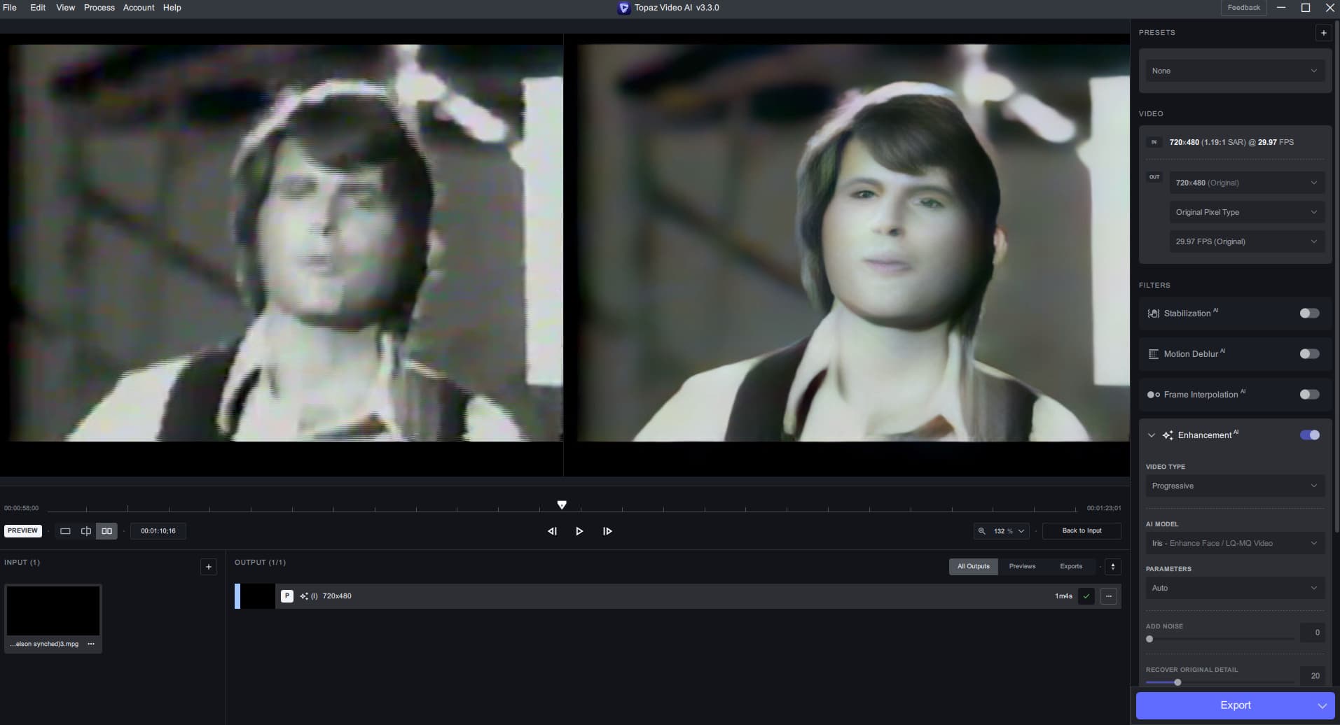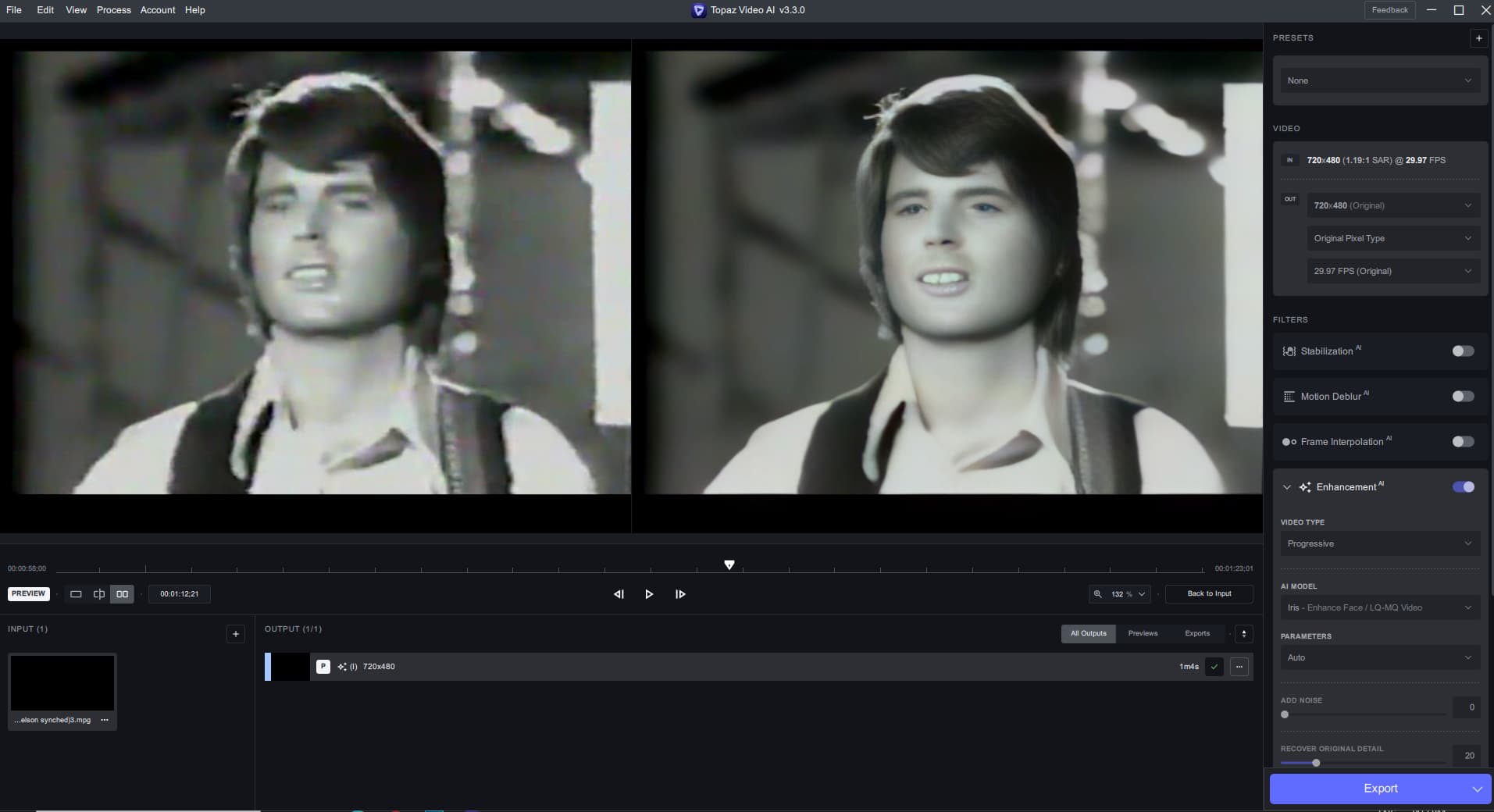 I told you to use recover original detail at 100 because, I found the same distorted faces on some of my old videos. With recover detail at 100 the faces are good in these videos. I tried it on a 176x144 3gp old 2005 mobile video. The results are good but only with recover detail at 100. Without this, I have alien faces.