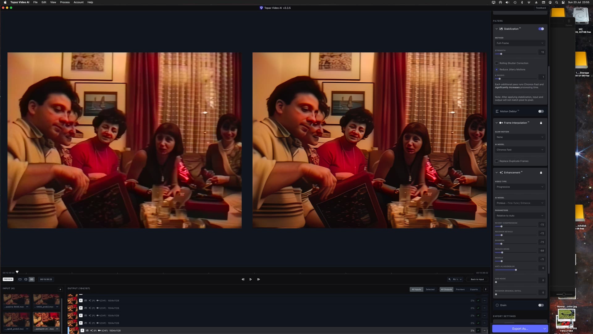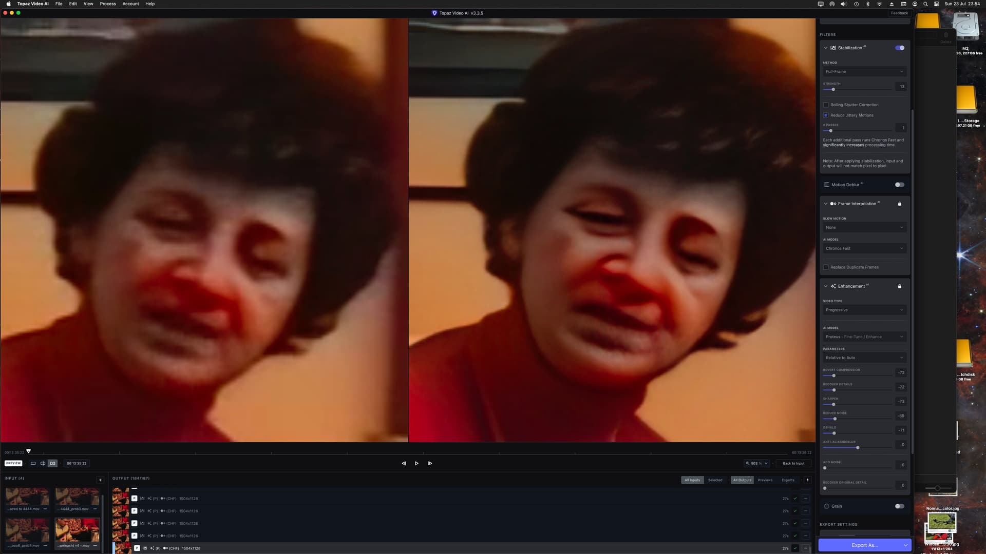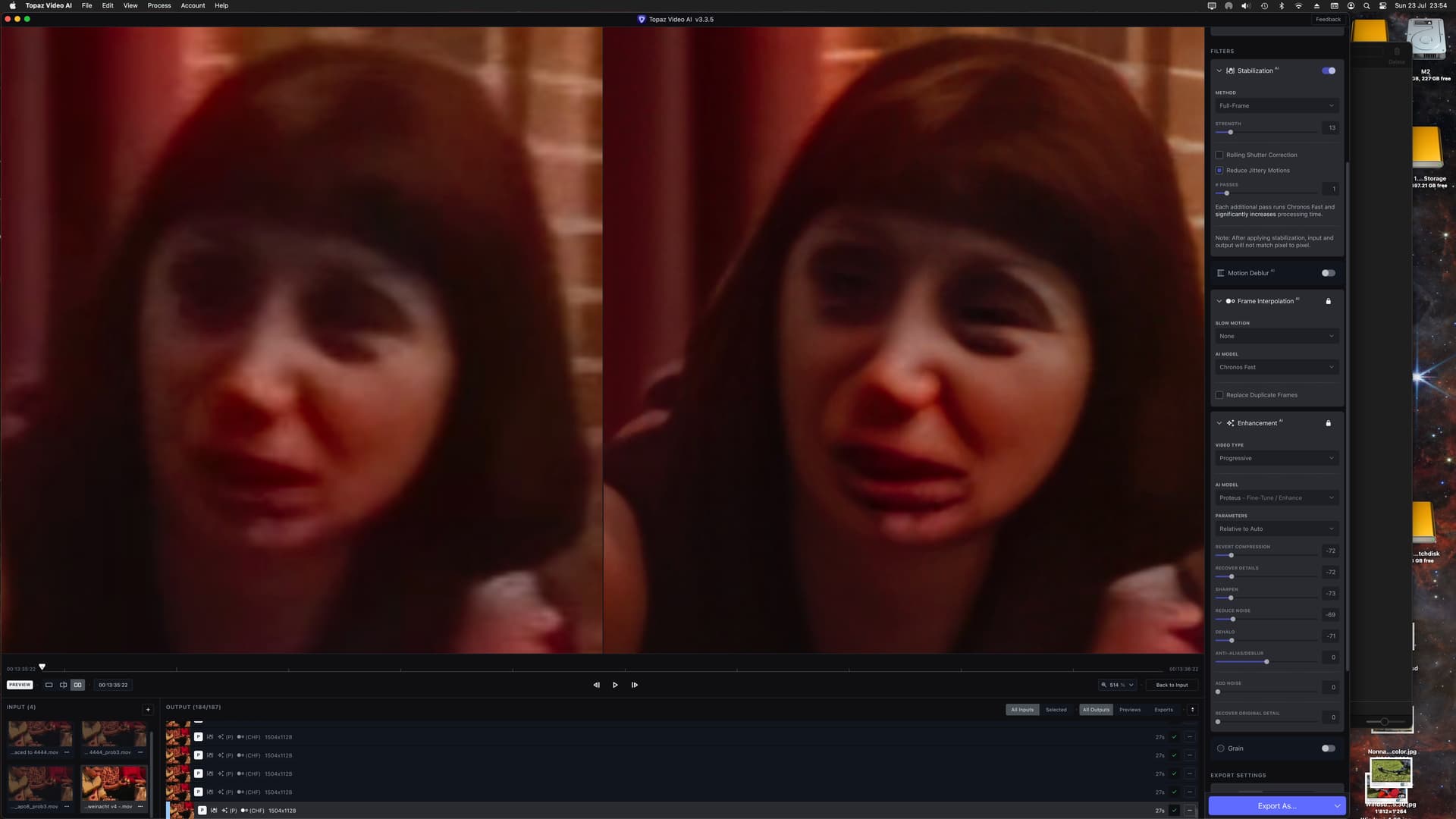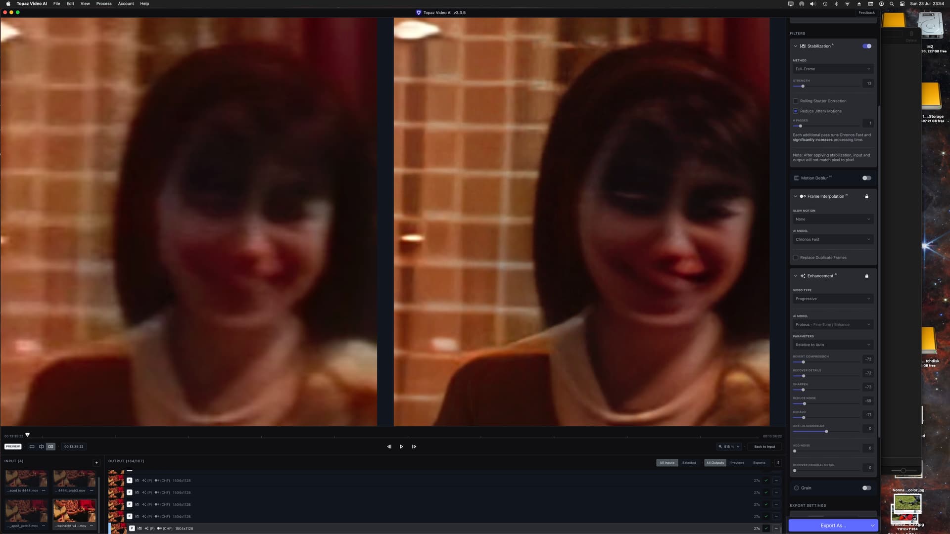 Why so much difference in time between v3.1.11 and v3.3.5? With version v3.1.11 I convert a 1280x720 clip of 25 seconds to 4K using Proteus auto and it take 13 minutes and doing the same with v3.3.5 is 50 minutes. Everything is exactly the same preference and preset.