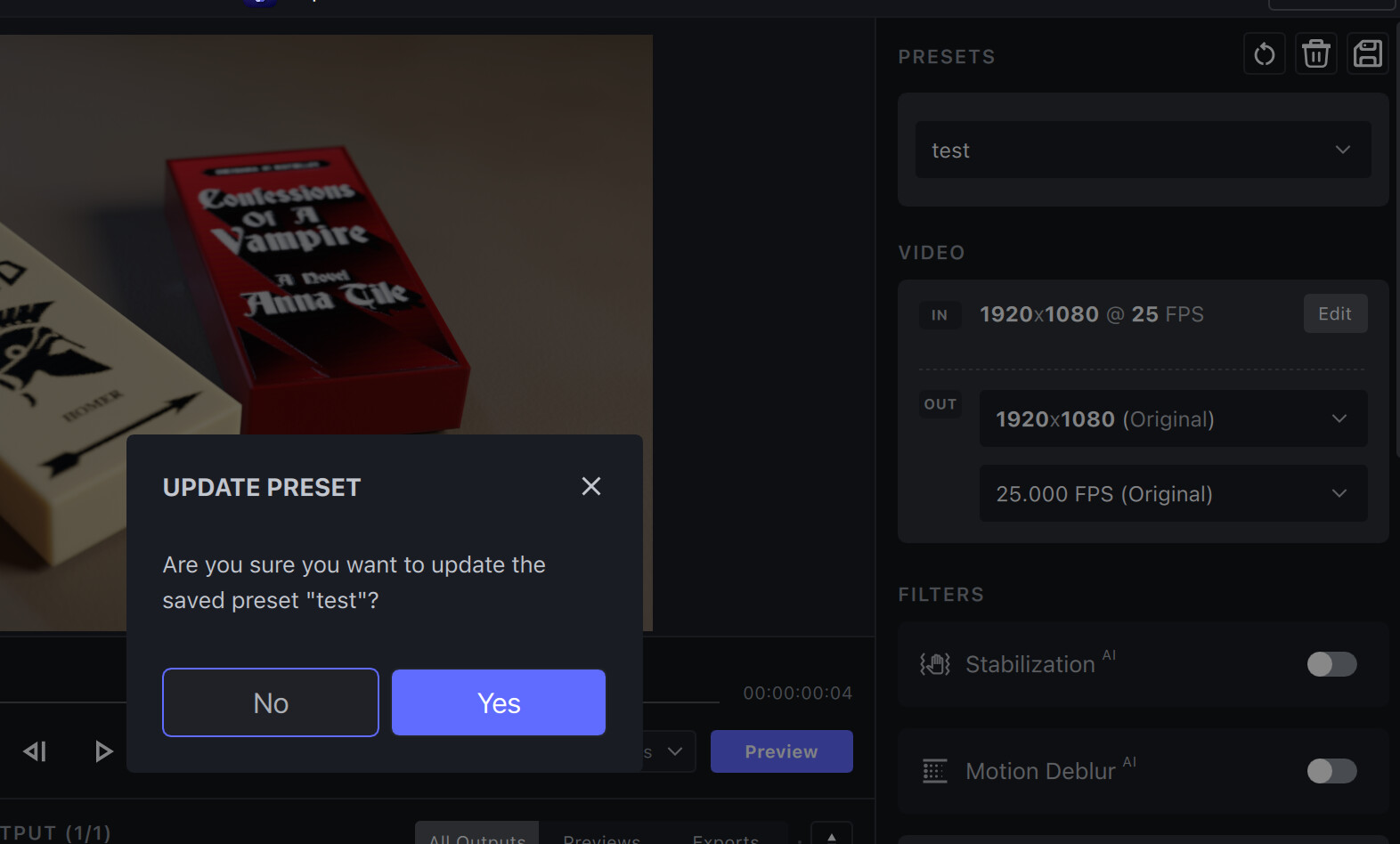 I’ve noticed, that, for “old” and new profiles, if I want to hold on 1080 pixels as height for every newly imported video (I set up one of my “new” presets as starting one), I need to retype “1080” in this field for every new video I drop onto VEAI: