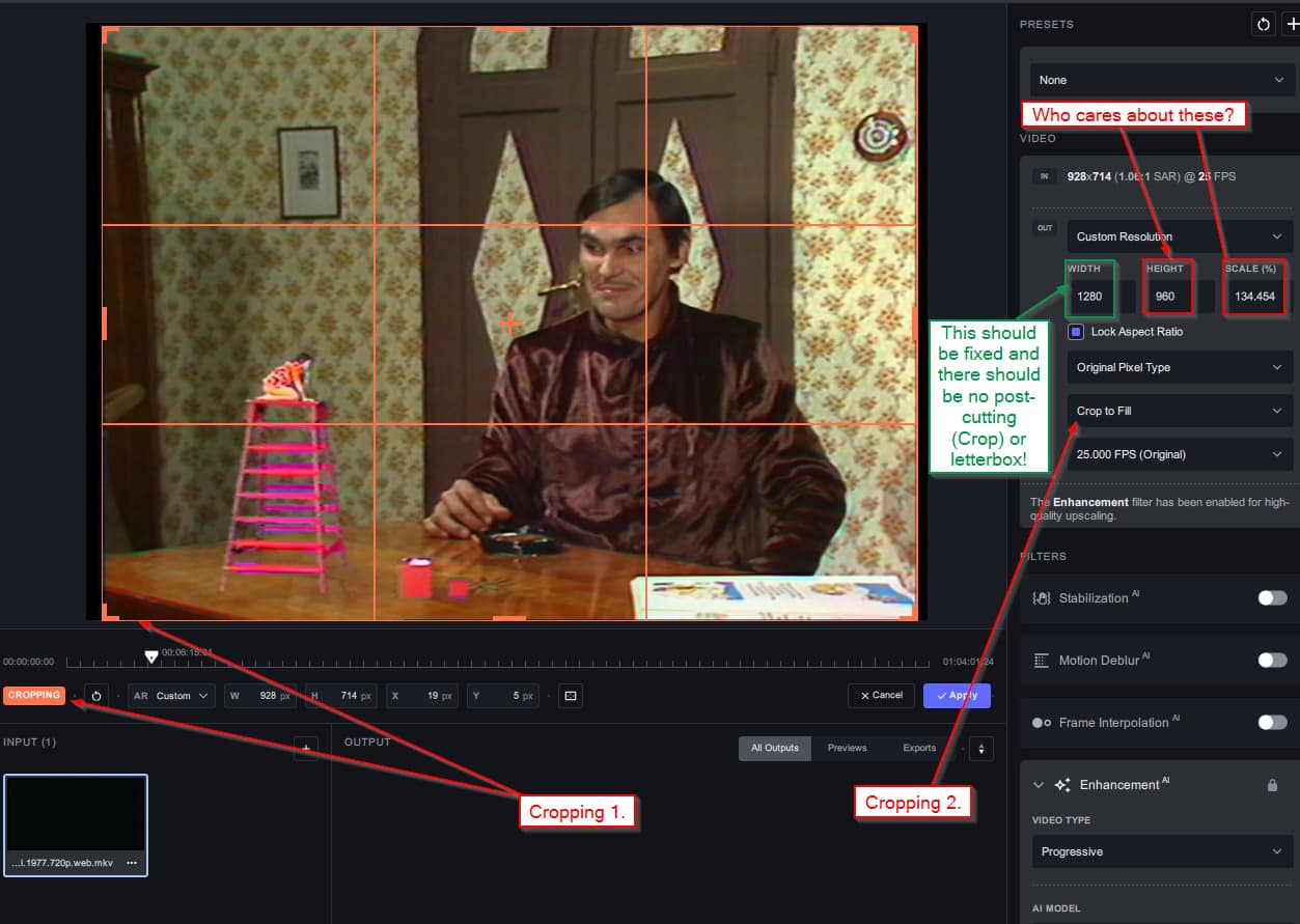 But now that because of the pre-phase cropping, I don’t know the current height or the width (nor the proportions!) In addition there is also cropping at the output, which is very confusing because with double cropping (before and after), the hell already knows the real pixel number.