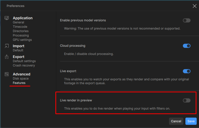 Appreciate the explanation. It seems the problem I described was indeed caused by the preference setting “Live Render In Preview”. The next question is, why was this option enabled by default in the first place? (I had not adjusted any preference settings since first launching Topaz Video.) Anyway, I’m relieved it is resolved, thanks.