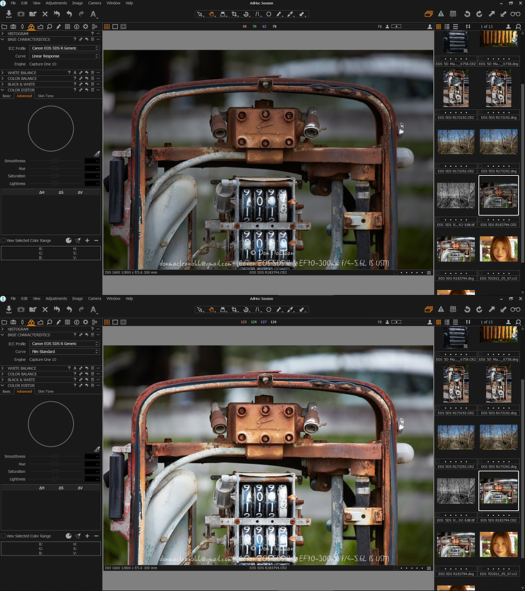 This particular example that I gave was because I had Affinity Photo open at that time … I could easily have used Lightroom, Photoshop, ON1 Photo RAW or Capture One … and just so you understand a Linear vs Default conversion here is a comparison of the two styles in Capture One, Linear Response Curve on the top and Film Standard Curve on the bottom …