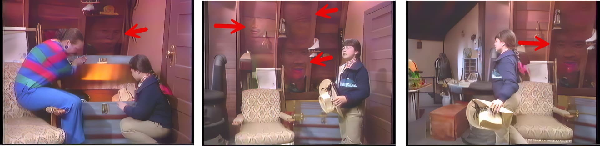 Rhea adds creepy faces that are not part of the scene. I’ve attached a screenshot where you can see faces superimposed on the wall panelling (that are not there in the source video).