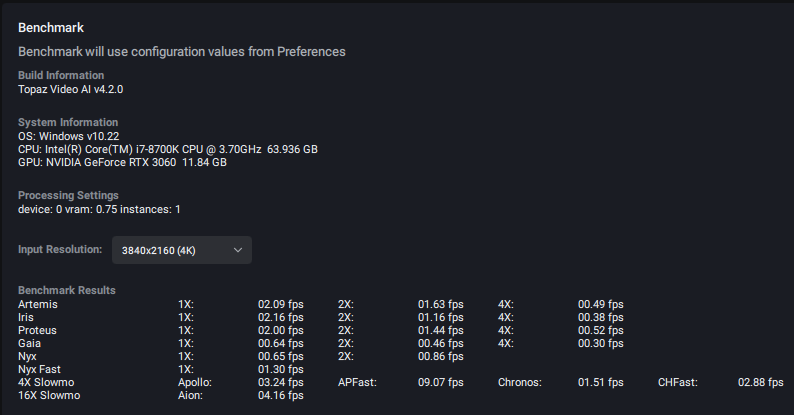 In both cases (but especially the 4K), my Apollo Fast benchmarks seem a little suspicious, I can’t help but wonder if that’s related to the bug I recently noted regarding Apollo Fast.