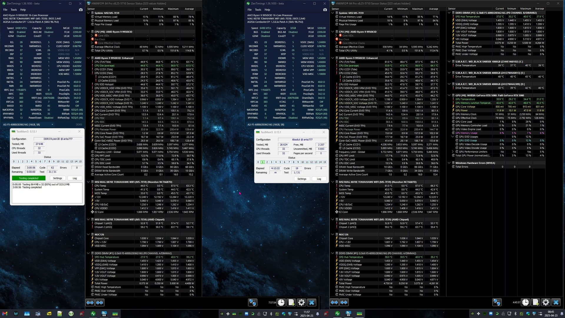 CPU: AMD Ryzen 9 9950X3D 16-Core Processor 31.555 GB