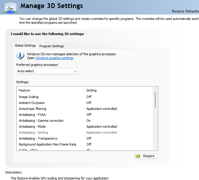 Thank you for the quick response. I have re-installed again and checked the settings with the Nvidia app, mine look like the snapshot below which seems to match your suggestion.