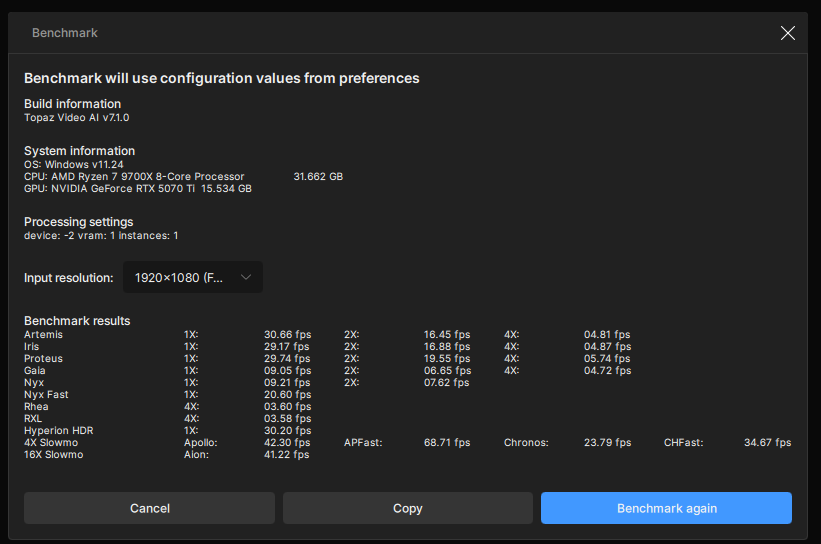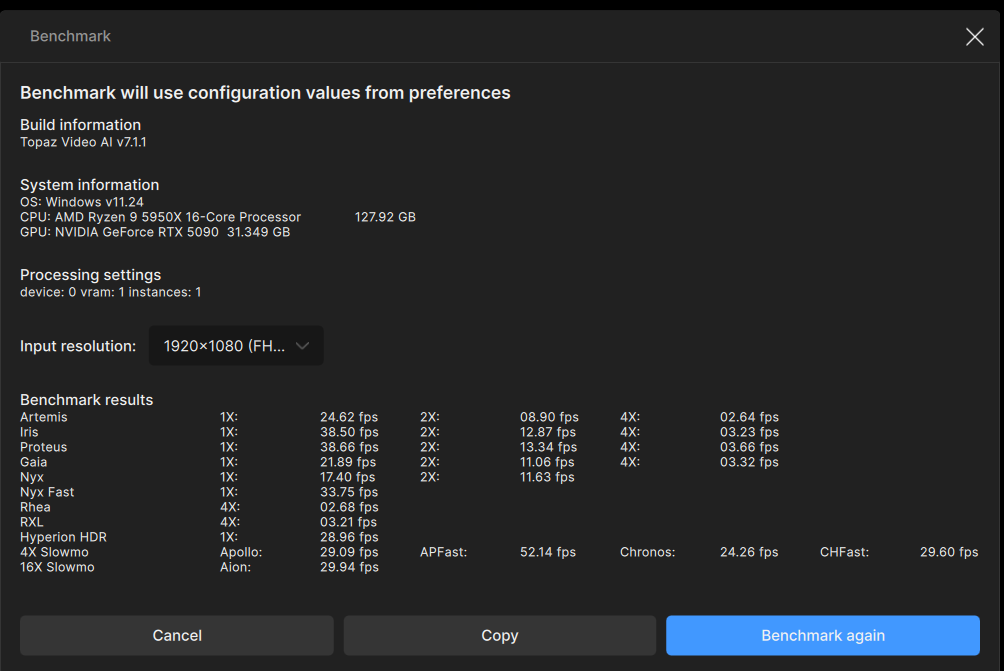 However, looking at the performance results of others above, comparing it to a system with the same 5950X and RTX 5070Ti, there doesn’t seem to be much of a difference. Is the RTX 5090 not worth the money for Topaz Video AI? Maybe I should reinstall Windows…