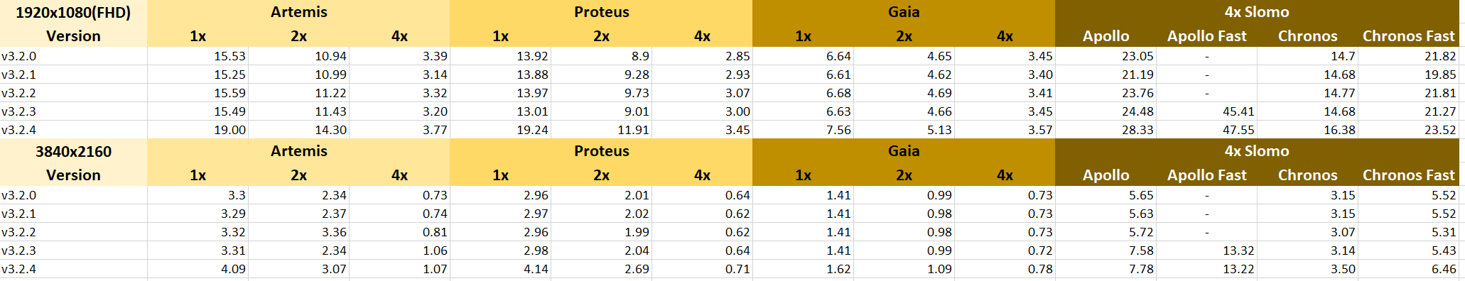 4X Slowmo Apollo: 30.41 fps APFast: 40.53 fps Chronos: 18.01 fps CHFast: 25.06 fps