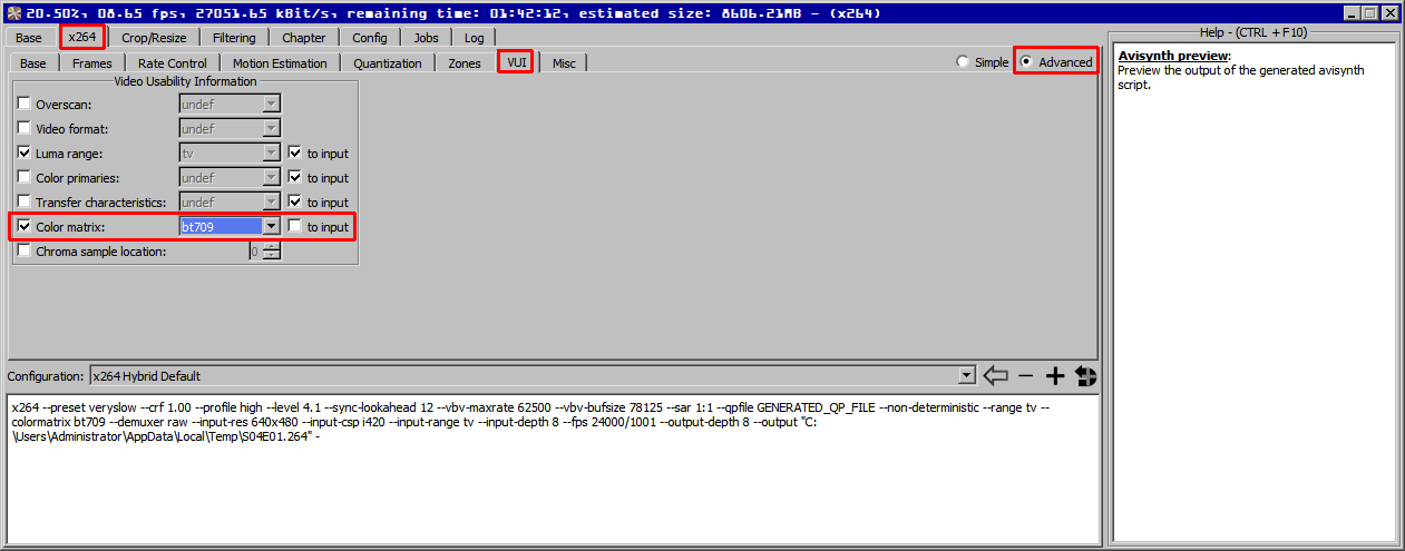 Additionally, if the user does any kind of color manipulation in Hybrid via filters, they may have to set a custom script and insert the appropriate conversion matrix at the correct point in the script if it does not happen automatically (i.e., ConvertToYV24(matrix="Rec601")). This wouldn’t be a concern if the Topaz VEAI output was correct.