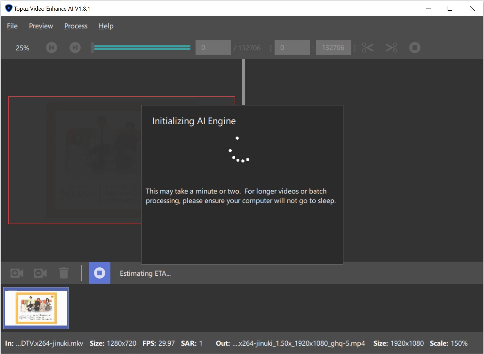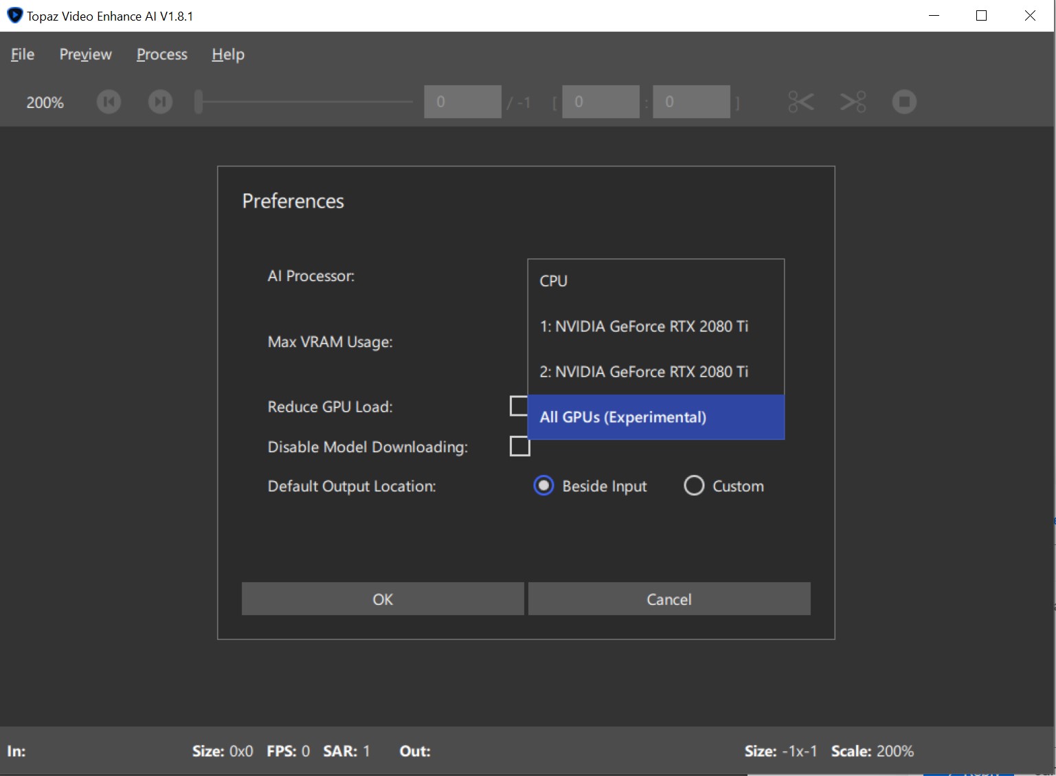 I think thereâs a new bug starting from VEAI version v1.8.0 & v1.8.1, the AI Processor âAll GPUsâ would cause VEAI to get stuck at the âInitializing AI Engineâ screen.