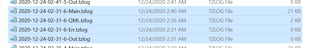 Grab the 4 latest .tzlog files and come back and post here (you will be able to see by timestamp or by file name which are the latest)