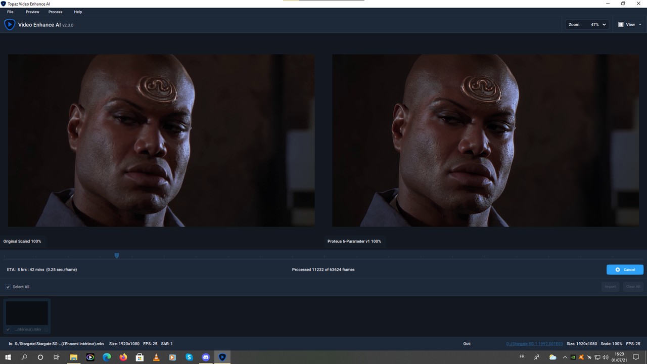Small example with an episode of Stargate SG-1 whose original version is a bit blurry.