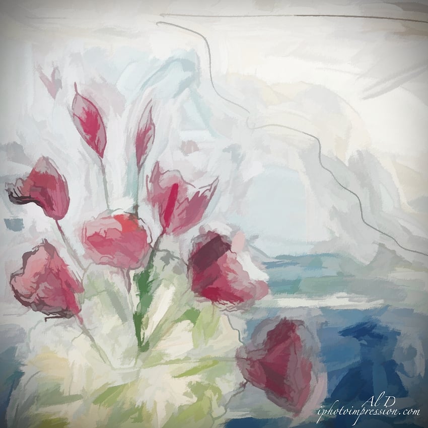 Simplified a simple watercolor that I painted. It was a doodle on scrap paper. I photographed it and used simply to create a light spring-like feeling, yet there