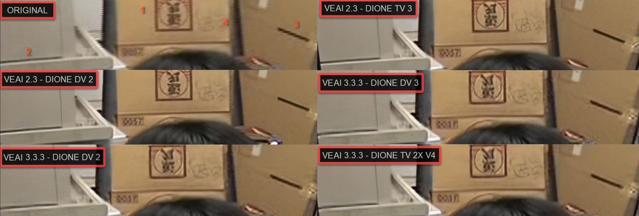 Meanwhile, Video AI 3.3.3 using the same 2.3 models look a lot worse, like itās missing half the resolution, the new IRIS model is a blurry pixelated mess and even the āInterlaced Progressiveā models, which output just 29.97 fps look much worse than VEAI 2.3 doing a 59.94 fps outputā¦