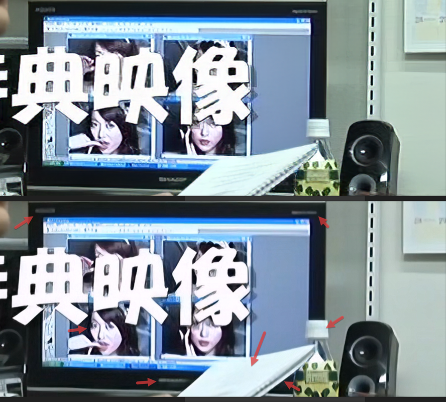 Look at the monitor frame letters. In Hybrid+3.3.6 is just a blur. Same with the notebook. All the detail is gone: no lines in the page and the spine is also a blurry mess.